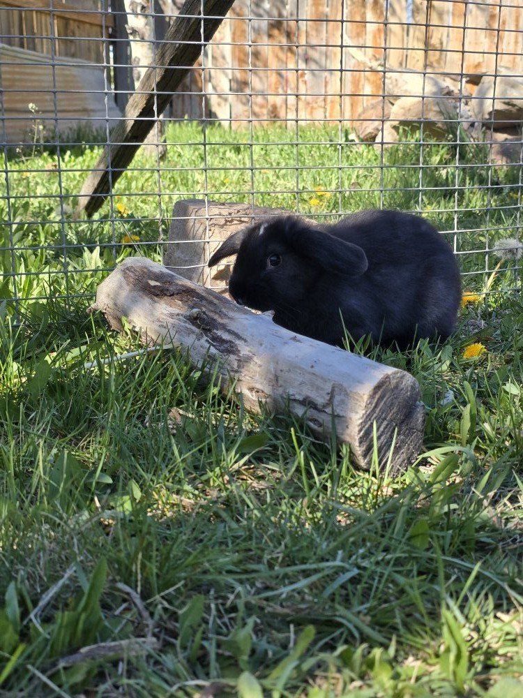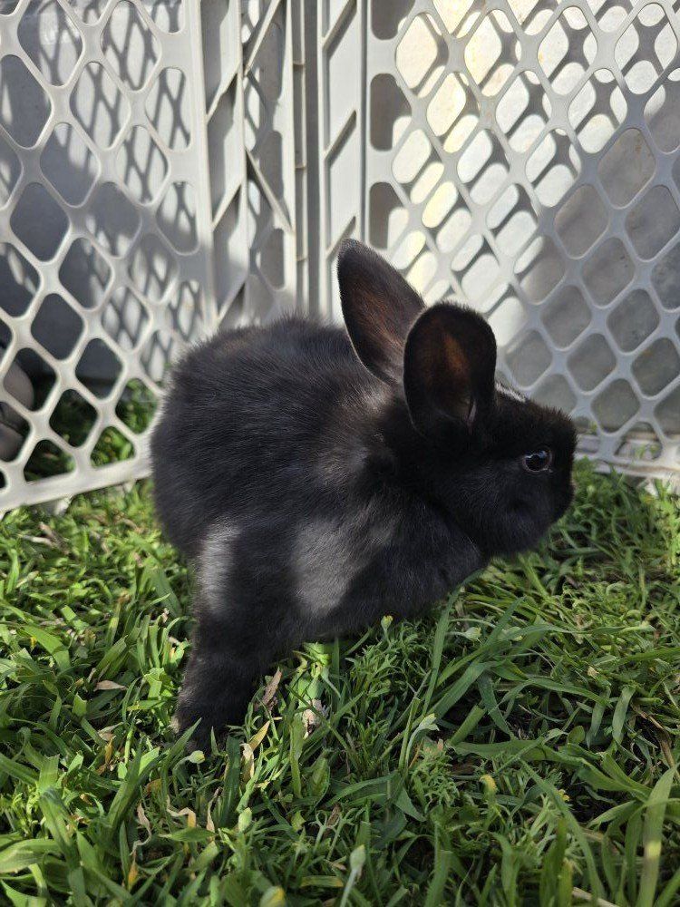Dad is a Holland Lop & Mom I believe is a cottontail, or something similar. Loves treats of celery tops and cucumbers.
