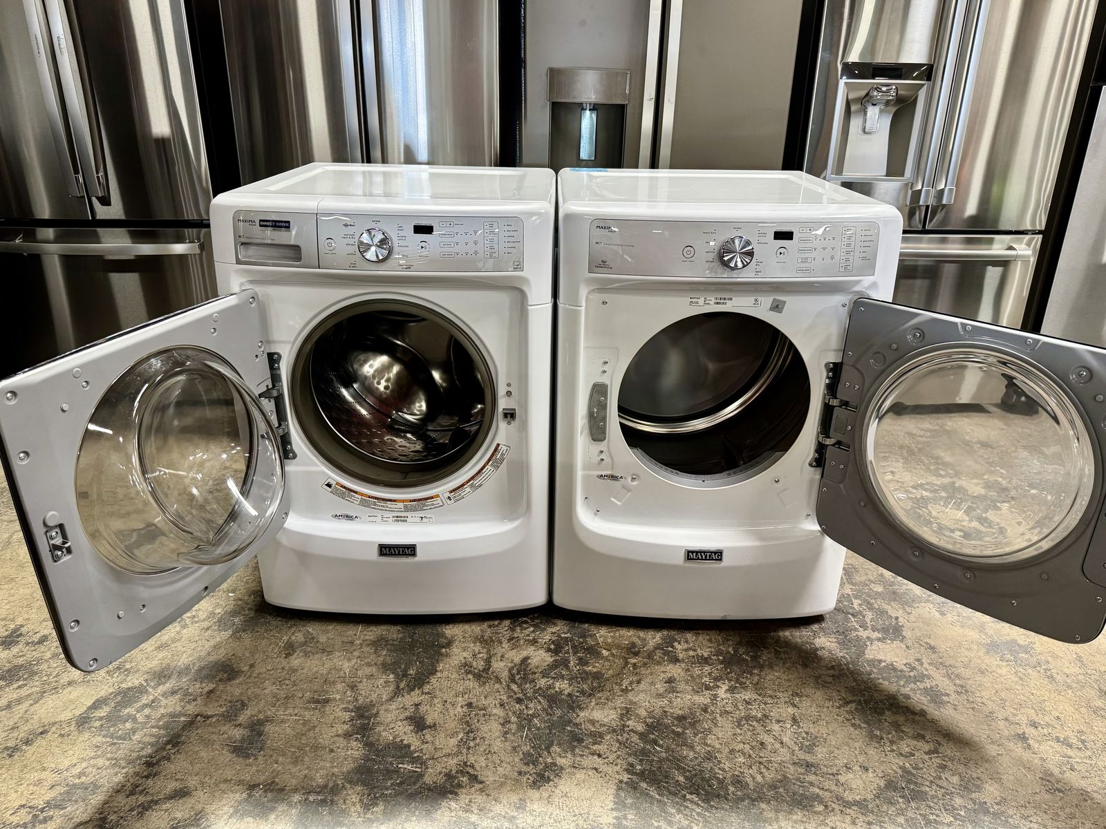 This Maytag set is in excellent working condition. A parts and labor warranty is included with your purchase.