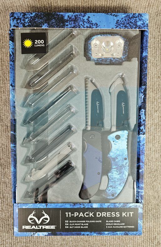 Manufacturers description: The Realtree 11-Piece Game Cleaning & Dressing Kit is a comprehensive set designed for hunters looking to efficiently process their game. The kit includes 11 tools such as hook and hunting knife with a straiqht edge blade, making it easy to clean and dress your game.