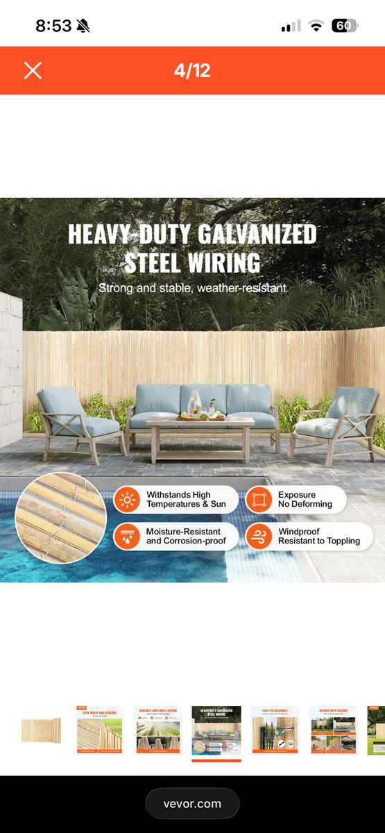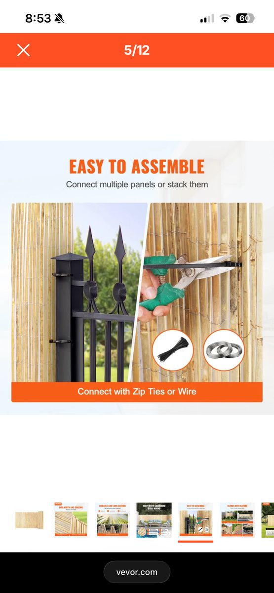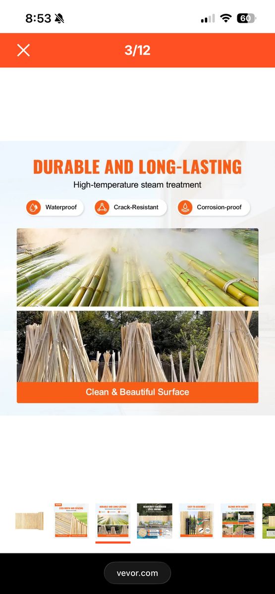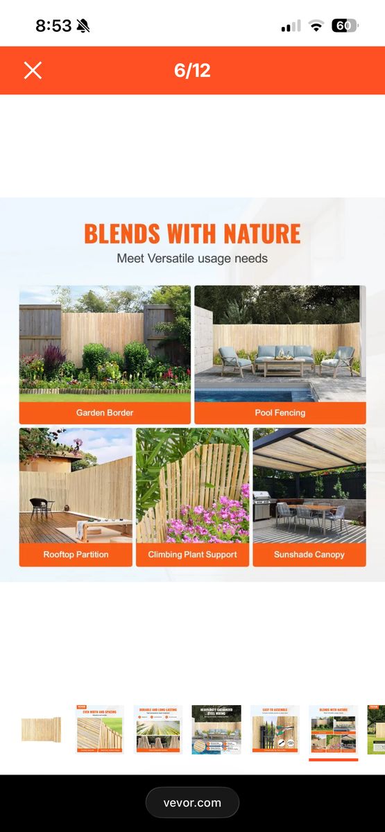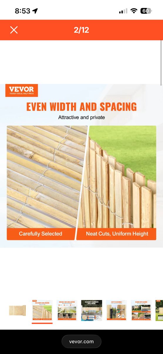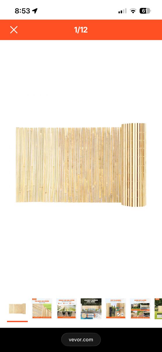 VenmoNEW - unopened! Vevor Natural Bamboo Slat Screening, Eco-Friendly Privacy Bamboo Slat Fence, 3 ft H x 19.6 ft L Decorative Bamboo Screen Panel, for Garden, Backyard, Balcony, Patio, Pool Side