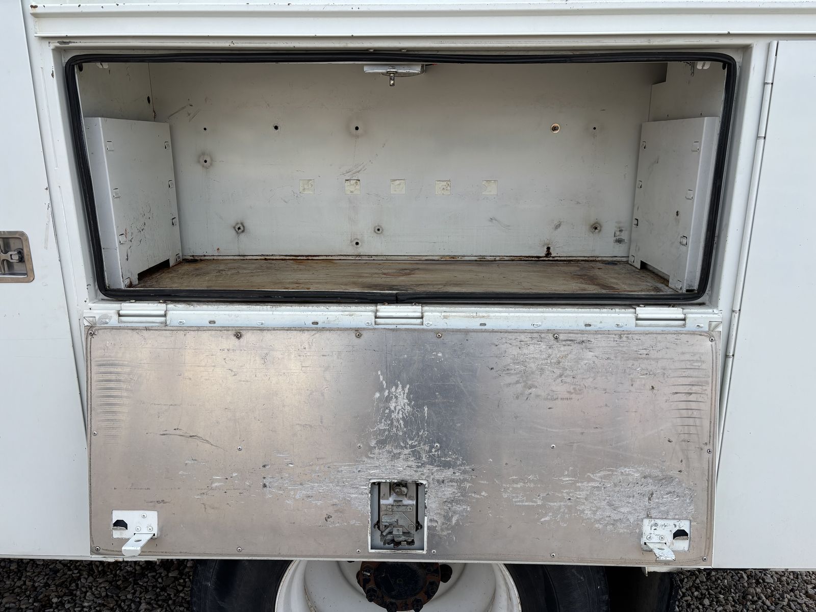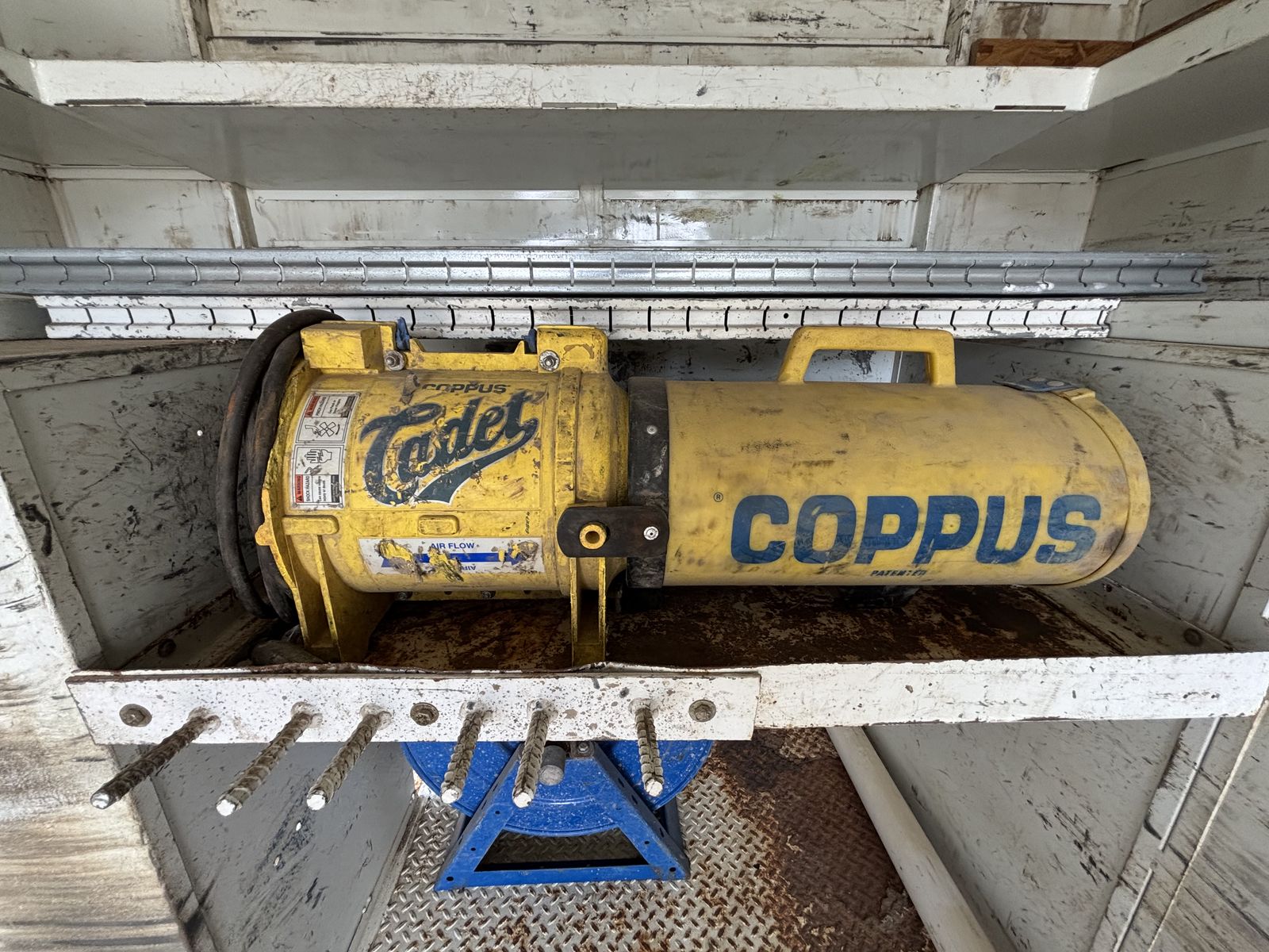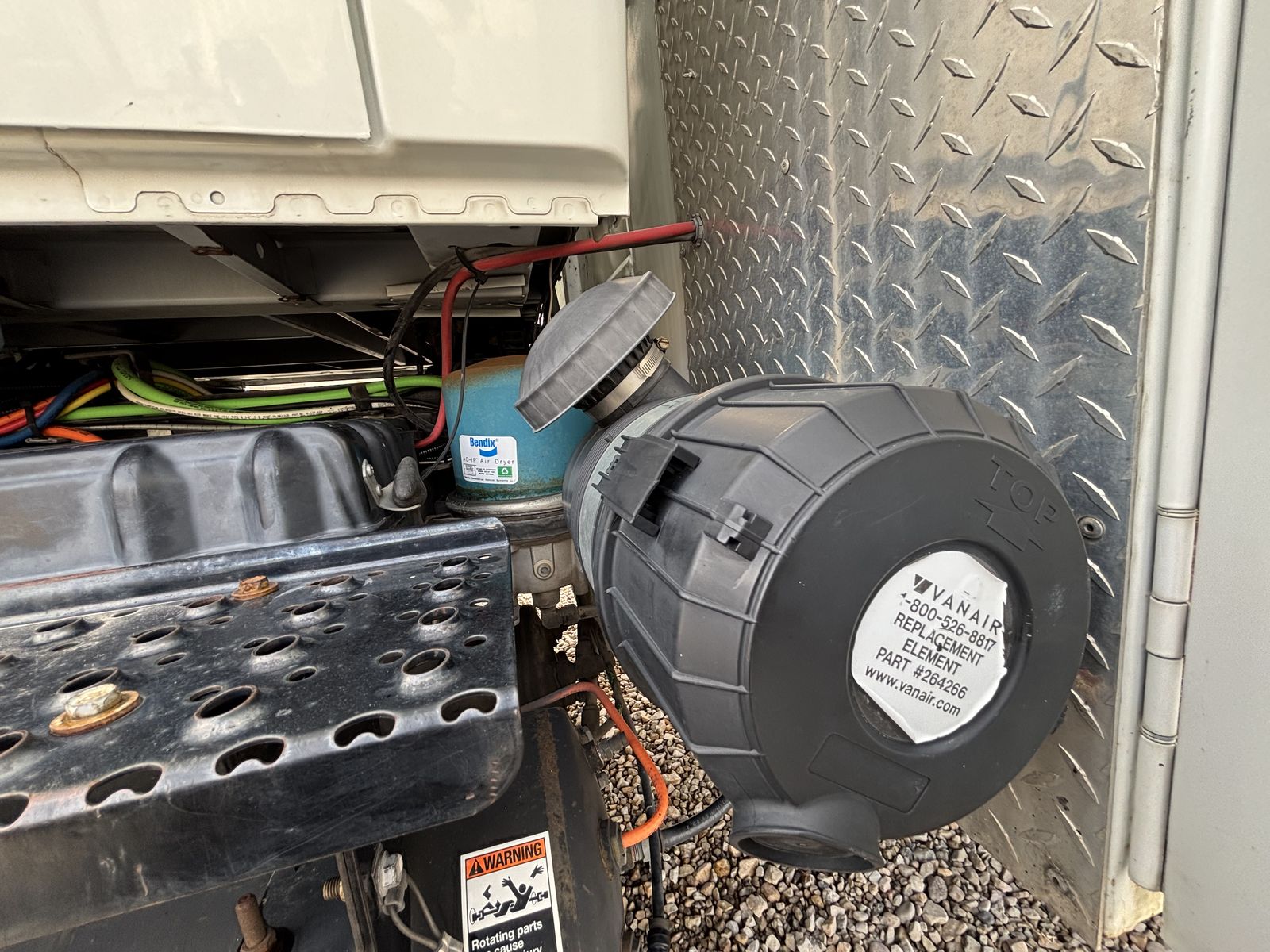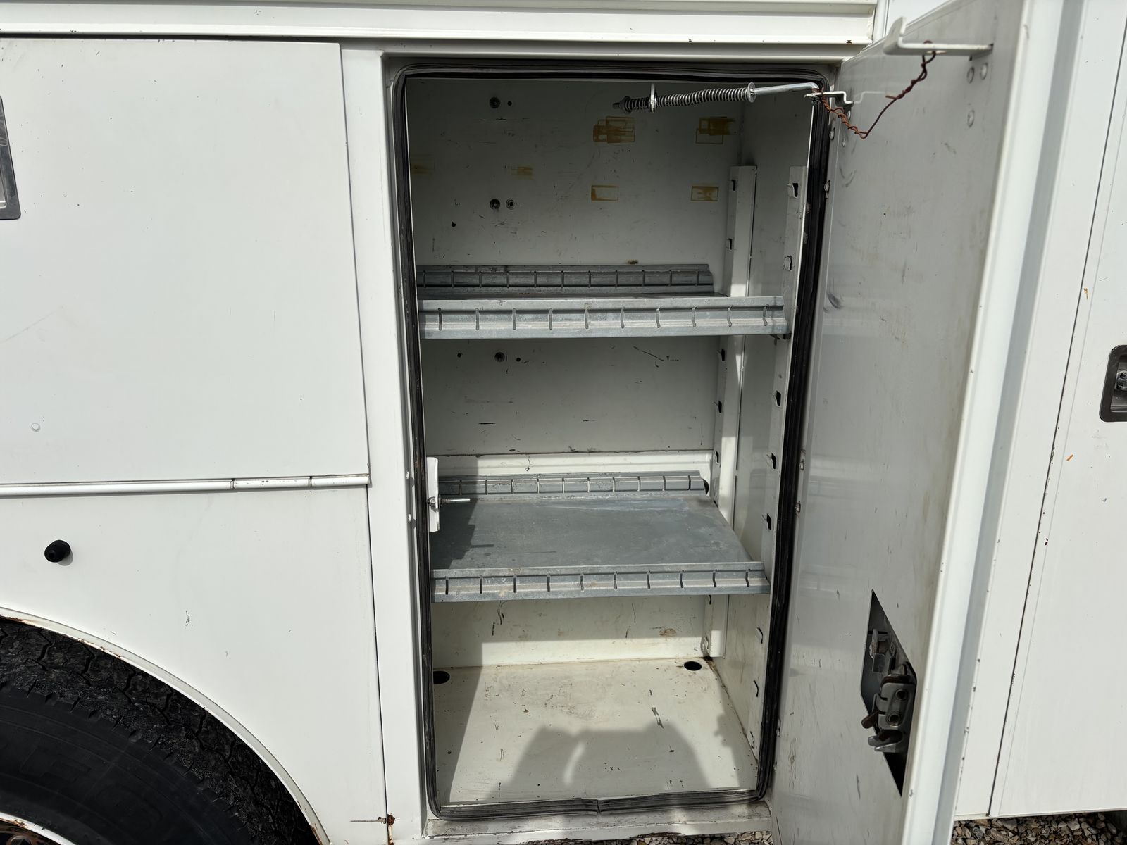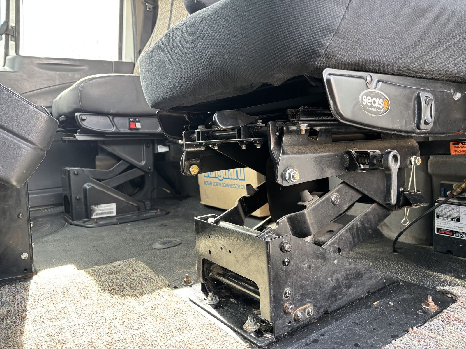 -VanAir compressor (PTO driven) •I have oil and a filter for an oil change for the compressor. •Two hose reels one on each side 1” and 3/8” the 1” has a power reel. -Tank holder for torch -Comes with a Copus Cadet blower with power hook ups on each side of the truck to operate the blower. -backup alarms -strobes -full lighting in all bins and box -Both seats have air ride
