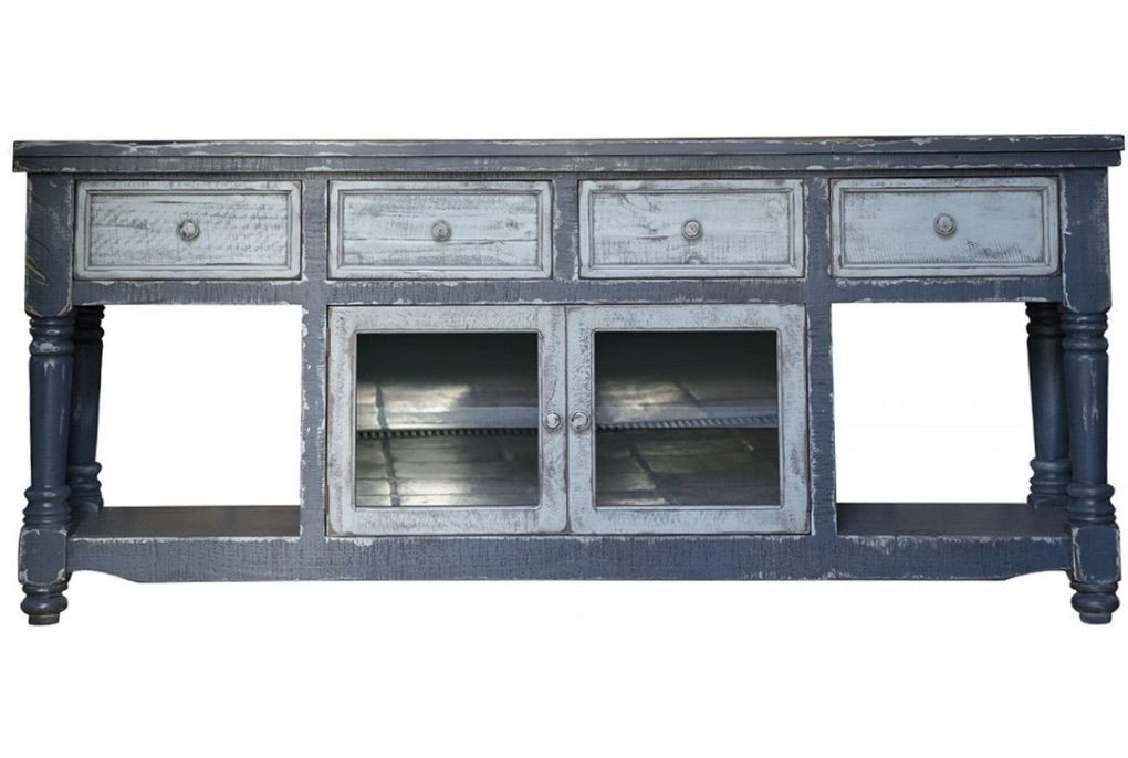 ApplePay70 TV Stand in Dark Blue Finish, w/4 sky blue drawers & 2 sky blue doors Dim: 70 x 19 x 34-3/4