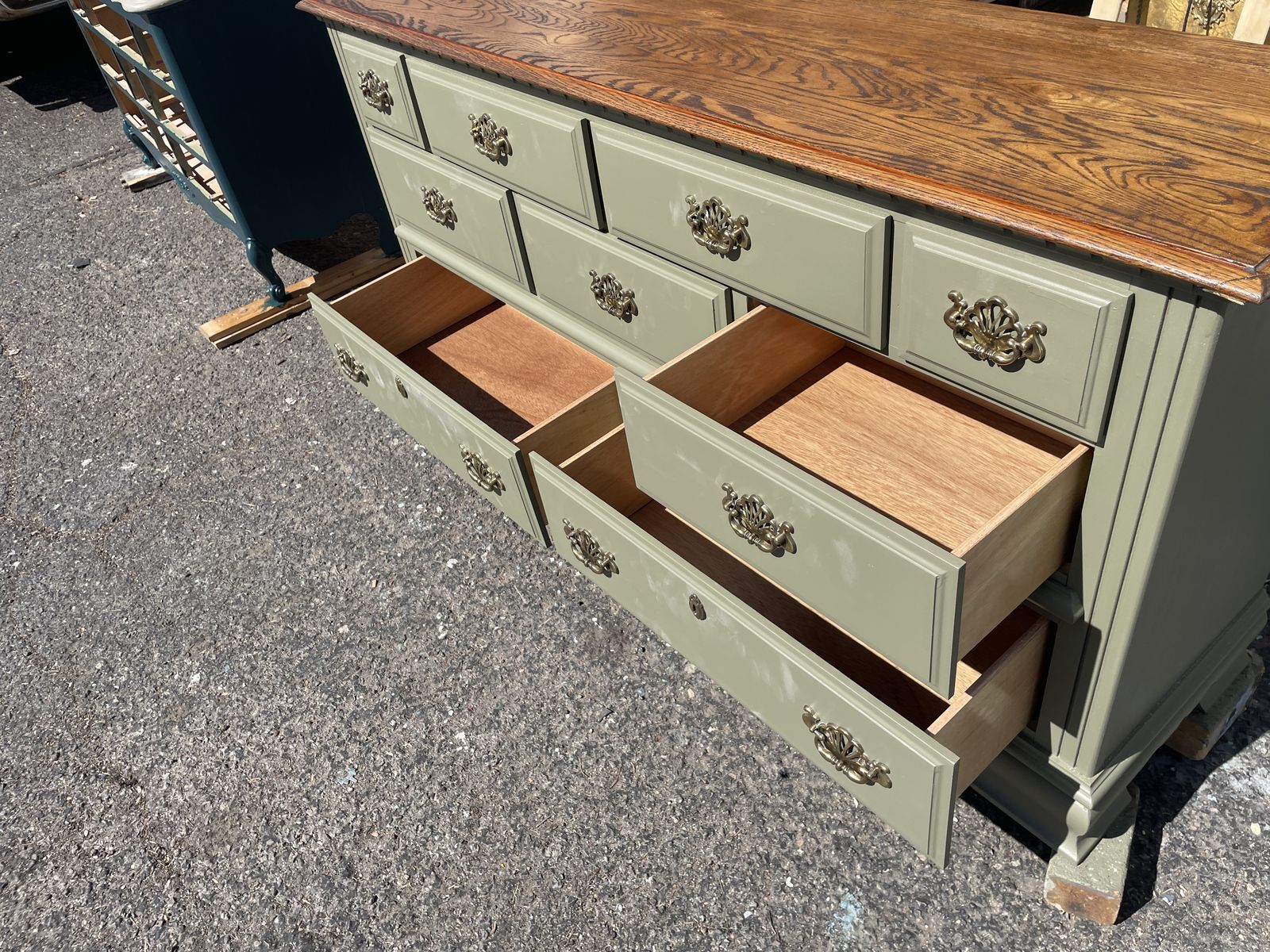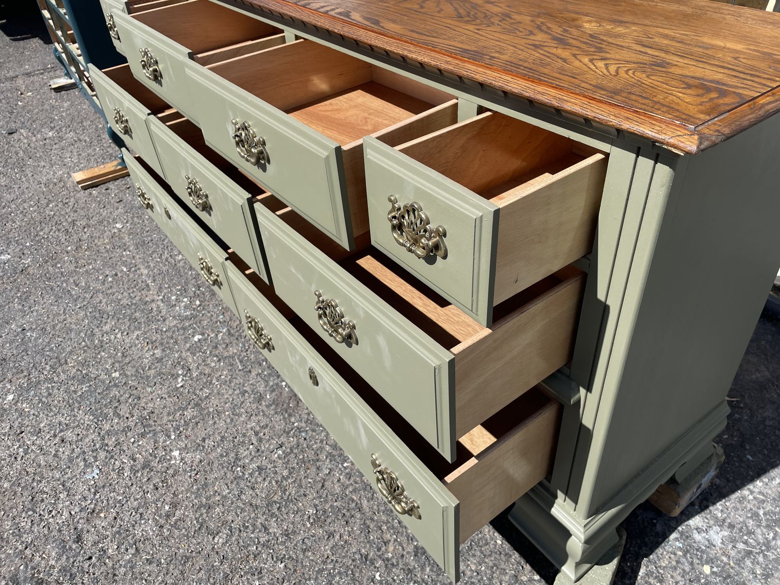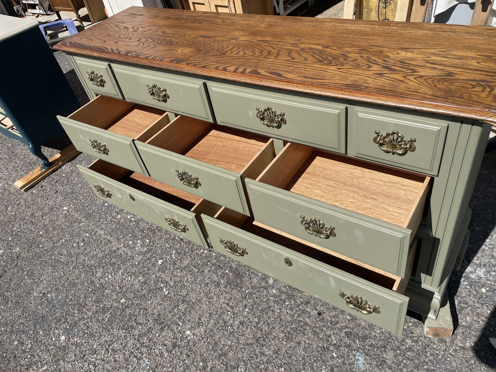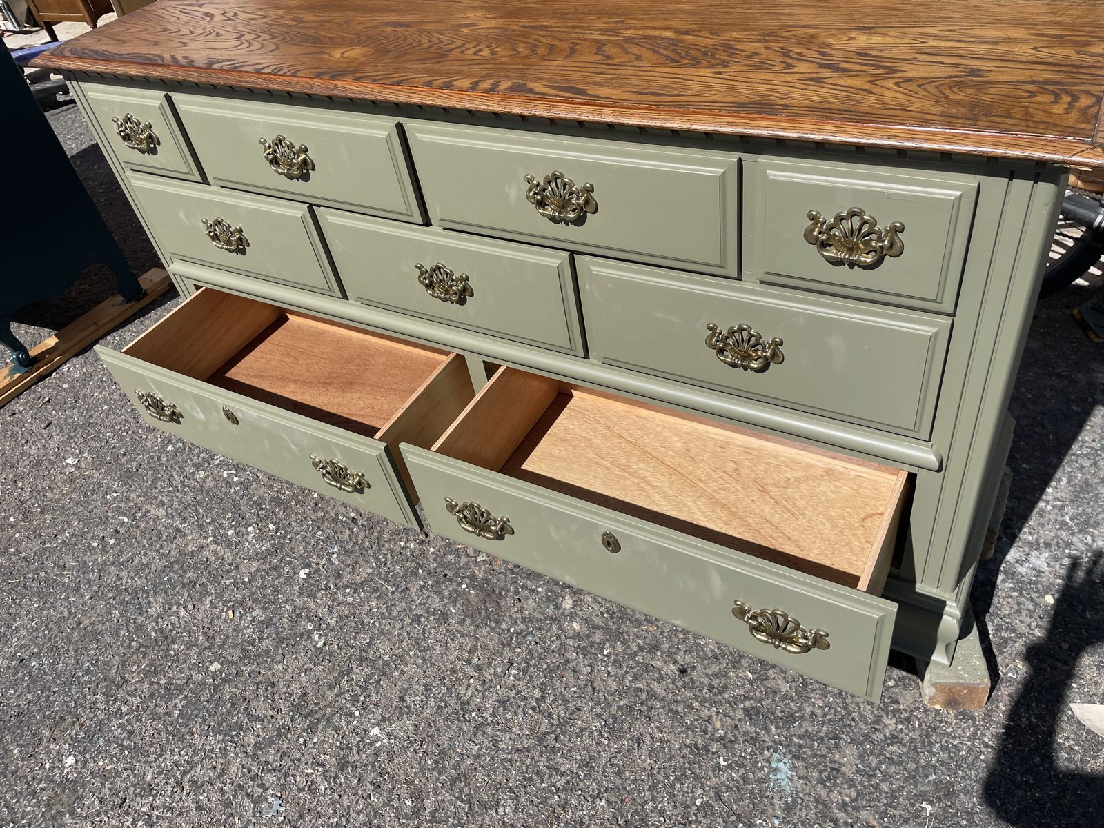VenmoNew never used solid wood well made by KINCAID aLE-BOY company DRESSER 9 DRAWERS freshly hand painted and stained Dimension are 66”1/2 Length 18” Depth 34” height asking $280.00 cash and pick up at sandy