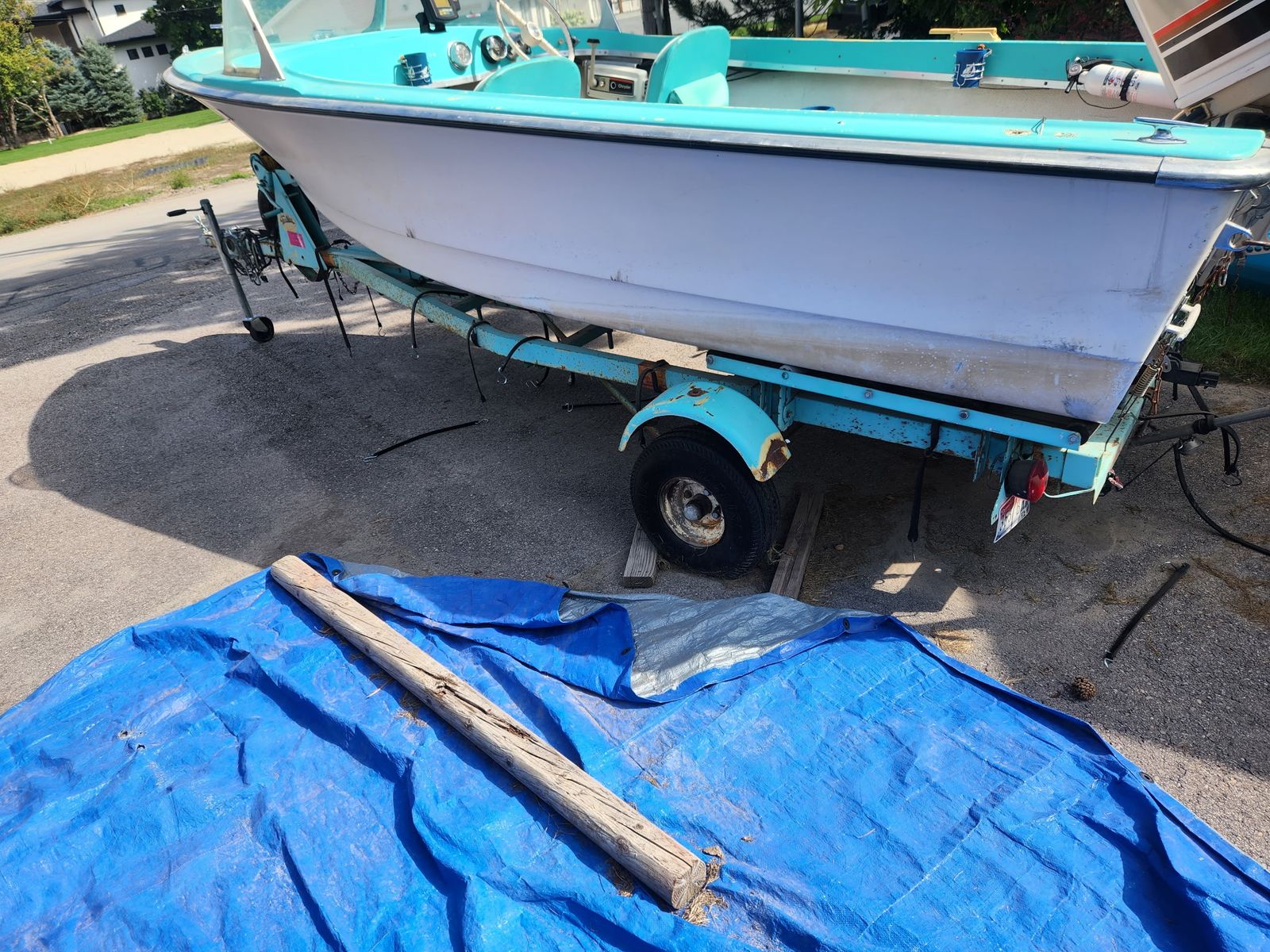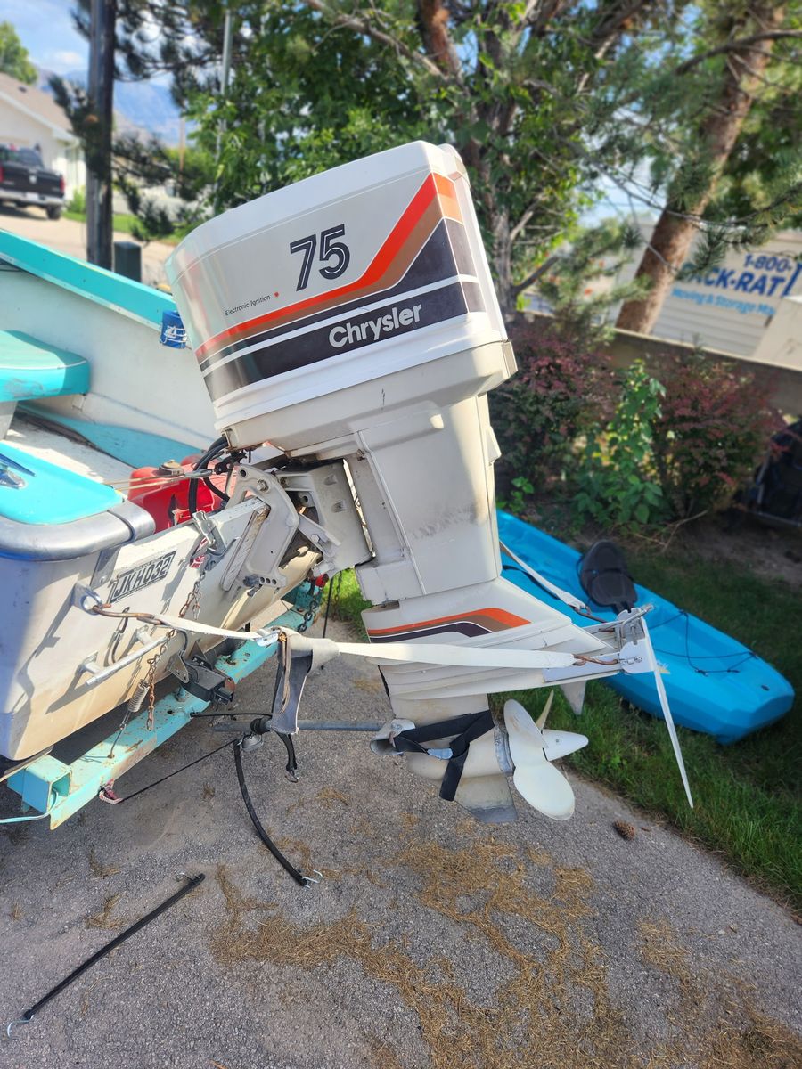 1960 15 foot wolverine fiberglass boat! With a TeeNee trailer, It has a 75 HP Chrysler outboard short transom motor, 1979. With 2 plastic metal cans and two plastic cans. It comes with a fish finder, spare tire and had always been covered!