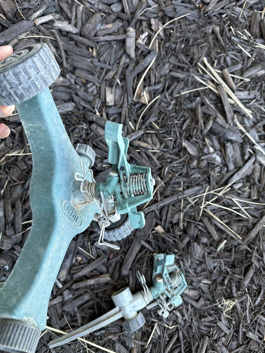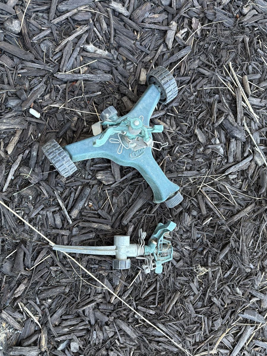 These hook up to a hose, one stakes in the ground the other is on wheels Works great