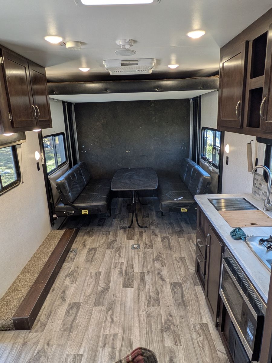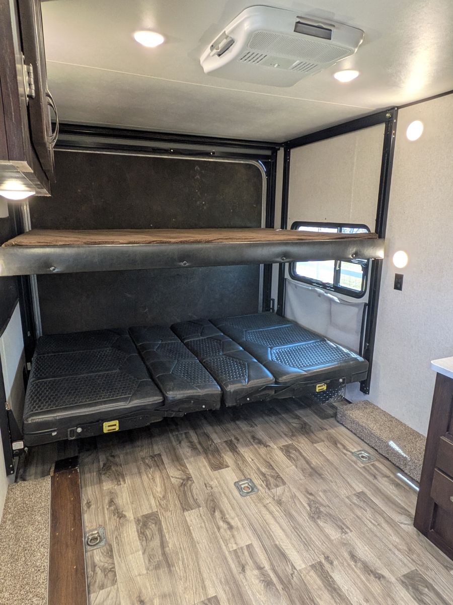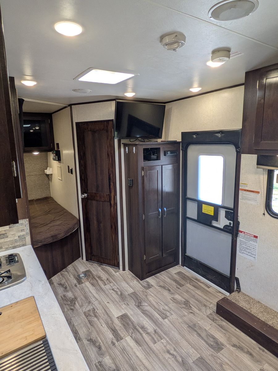YES!!! It has a big enough cargo area to fit my Pro XP 1000 RZR with extra wide rims and tires at 69 in. wide and 10 1/2 ft. with 78 in. headroom. Better than original with a 300 watt solar system and new lithium ion batteries and an inverter set up with the TV so you can watch a show with just DC power. It now has an upgraded Norcold fridge that runs on AC, Propane, AND DC power. (The factory fridge had a fire in the back which later became a recall item on these trailers, which is how it got a rebuilt title). At only 5990 lb. its easy to pull. It also has a 35 gallon fuel tank and pump. This trailer will sleep 6 and is a perfect trailer for your family getaway. Call Lowell Smith at 801-661-9391