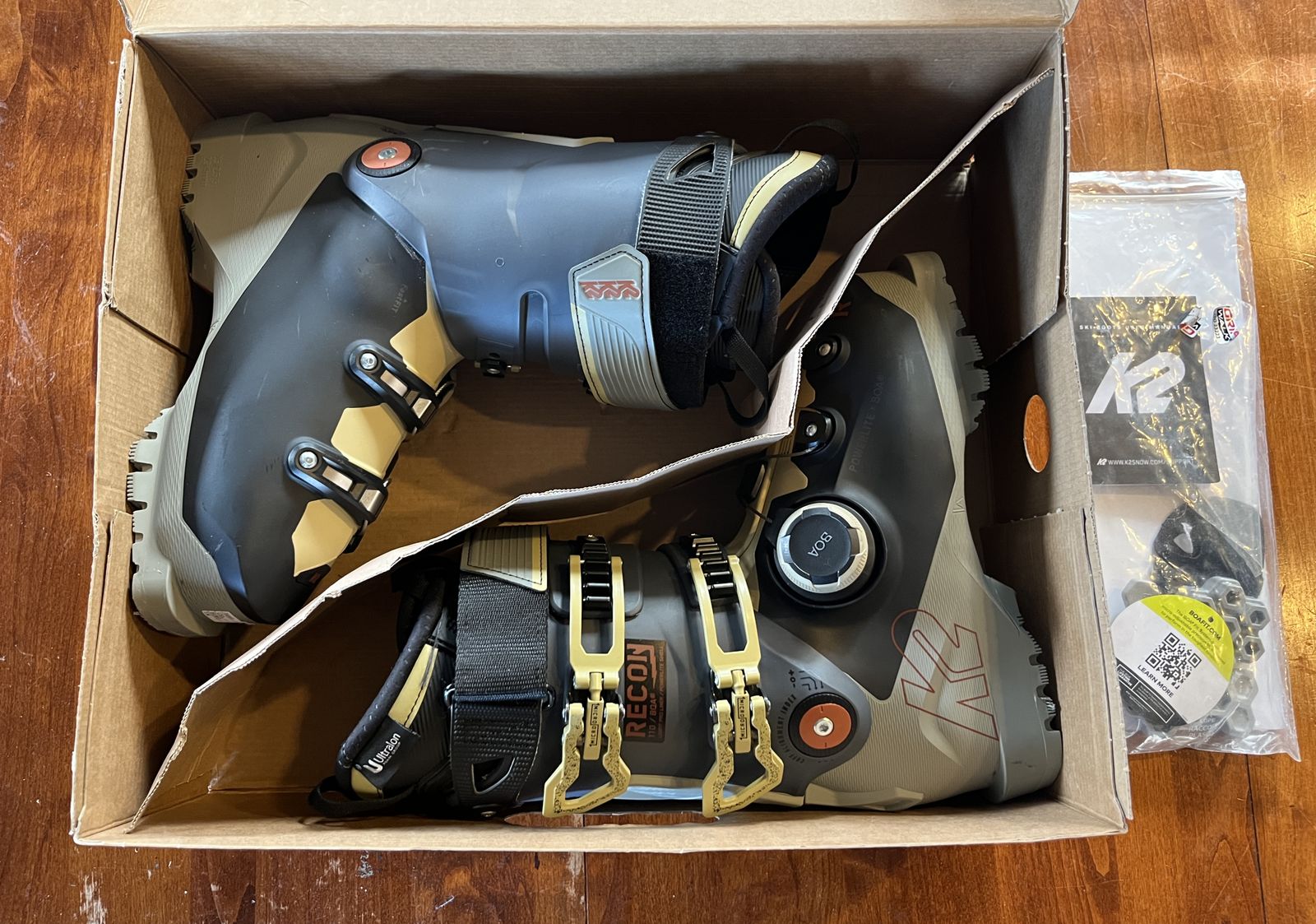 VenmoK2 Recon Size 25.5 Flex Rating 110. Only used 1 time. I tried 5 different boots before settling on the Recons. They were hands down the most comfotable boots out of the box, which is why I bought them. Unfortunately, when I skied them for the first time, I found them a bit too stiff for my weight and skier profile. My loss, your gain!