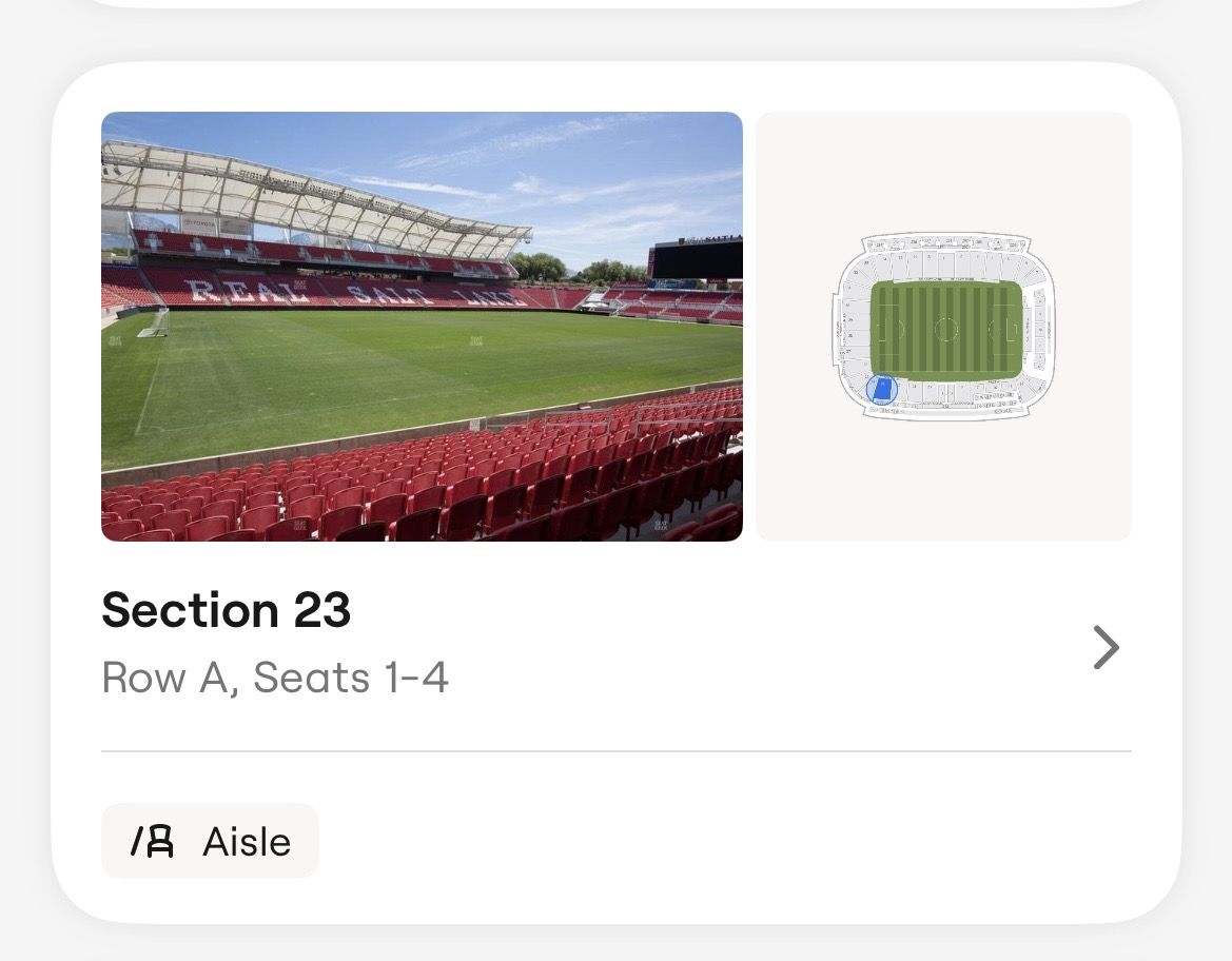 VenmoUnable to use our 4 front row aisle seats season tickets to the home opening game, Utah royals vs San Diego wave. East facing seats. Will transfer via SeatGeek. $20 ticket. Or all 4 for $60 Seats in same section but higher up are selling for $42 on SeatGeek right now.