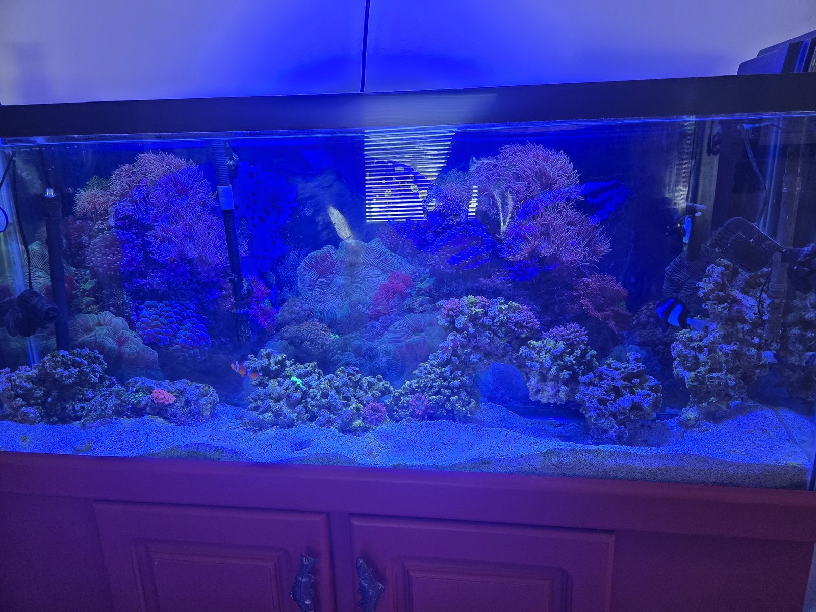 Protein skimmer , 2 Heaters, 2 power heads Etc. Even comes with a clown fish and damsel! Must take it all with a way to transport.