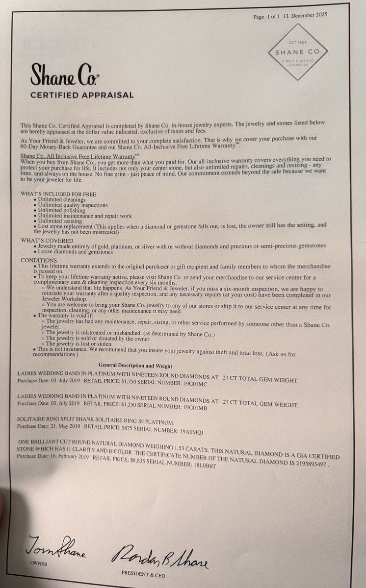 ApplePay1.53 Carat Natural Diamond on Platinum Band. Weddings bands with round .27 diamonds on each.