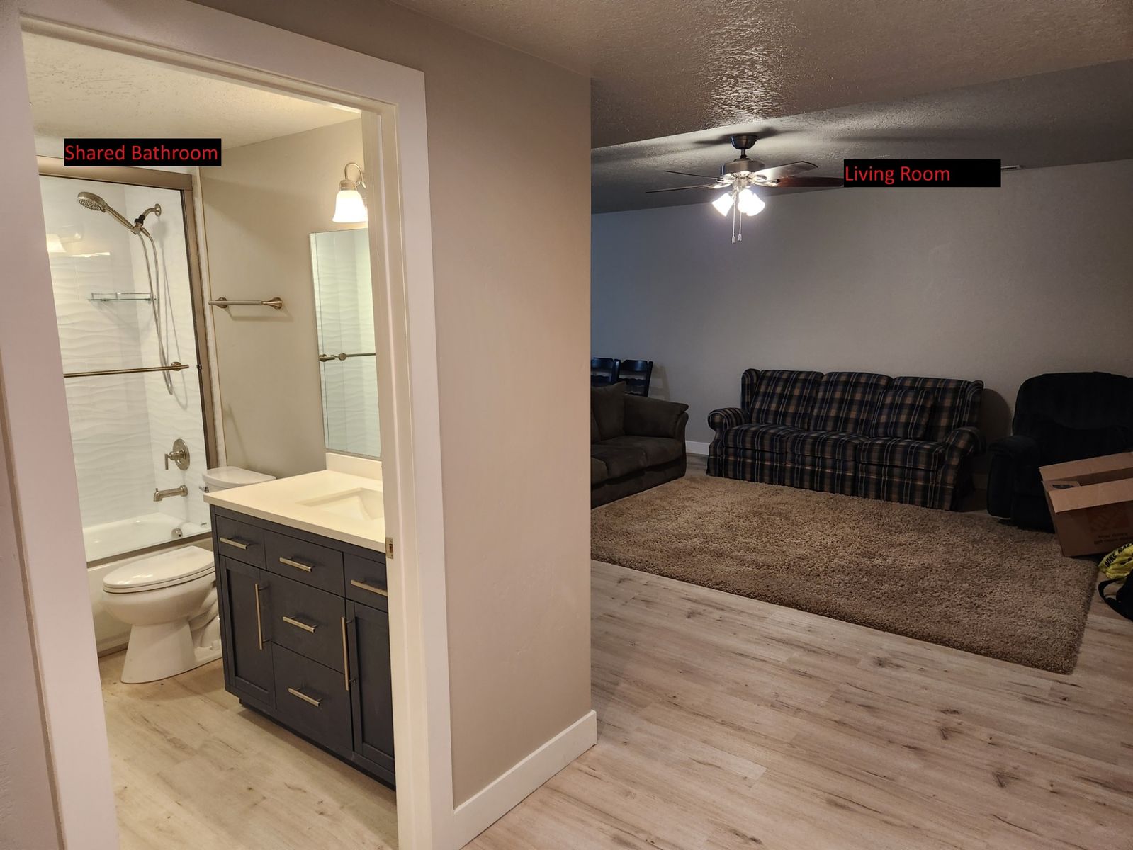 -Freshly remodeled Shared Bathroom