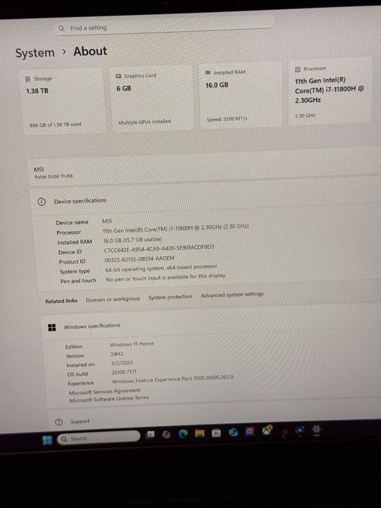 Key Specs: • Intel Core i7 Processor • NVIDIA GeForce RTX 3060 (105W) • 16GB DDR4 RAM (upgradeable) • 1TB NVMe SSD + additional HDD storage • 15.6” FHD 144Hz IPS display • Cooler Boost 5 advanced cooling (2 fans, 6 heat pipes) • Backlit keyboard • Wi-Fi 6 + Bluetooth 5 • HDMI (4K @ 60Hz support) • Webcam, Gigabit Ethernet, USB-C + multiple USB ports • Windows installed