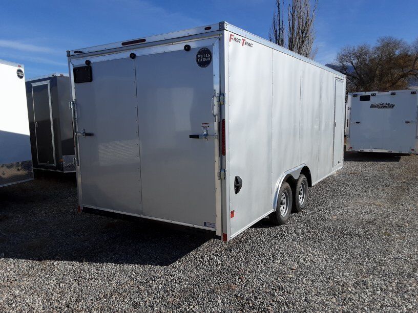 ----------------------------------INCLUDED UPGRADES--------------------------------FASTTRAC DELUXE MODEL FT8520T2-D SEMI-SCREWLESS ALUMINUM EXTERIOR, RV STYLE SIDE DOOR, V NOSE DESIGN, 7FT INTERIOR HEIGHT, .030 ALUMINUM EXTERIOR, 16IN ON CENTER FRAME ON WALL AND CROSS MEMBERS, 3/4 INCH PLEXCORE WATER RESISTANT DECKING (( SUPERIOR TO PLYWOOD )) 3/8 INCH PLEXCORE WATER RESISTANT INTERIOR WALL LINER,