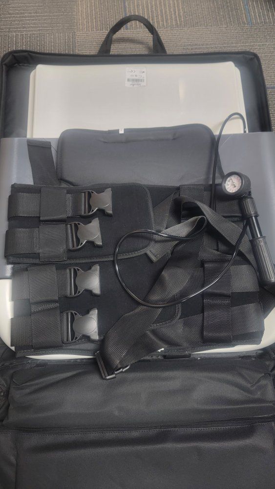 Saunders lumbar traction device in carry case with removeable wheels and users manual. These ar 469.00 new I am asking 340.00