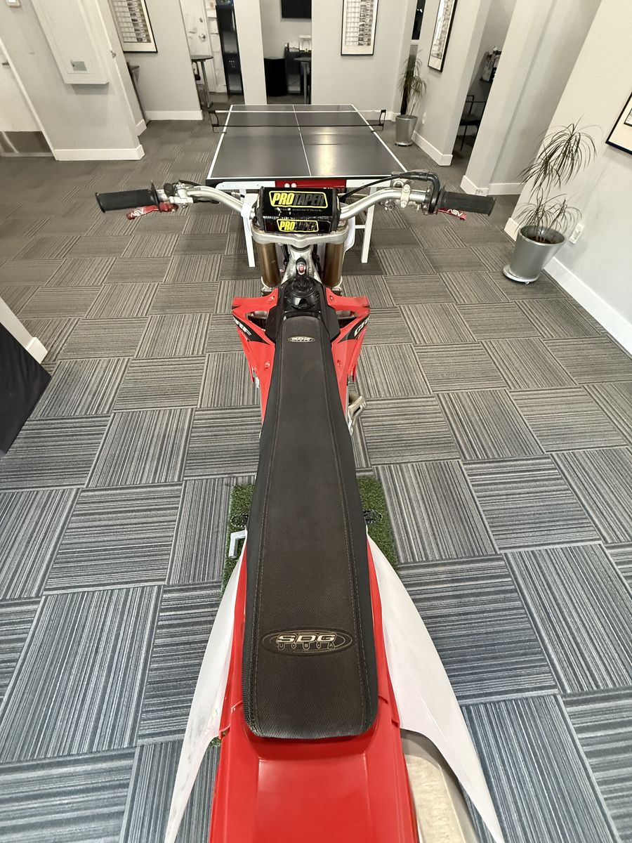 It’s equipped with a Boyesen water pump, ASV levers, upgraded/built suspension, upgraded exhaust, metal skid plate, radiator braces, and ProTaper bars. Bike comes with a stand and fork saver. 1 owner — purchased brand new off the showroom floor.