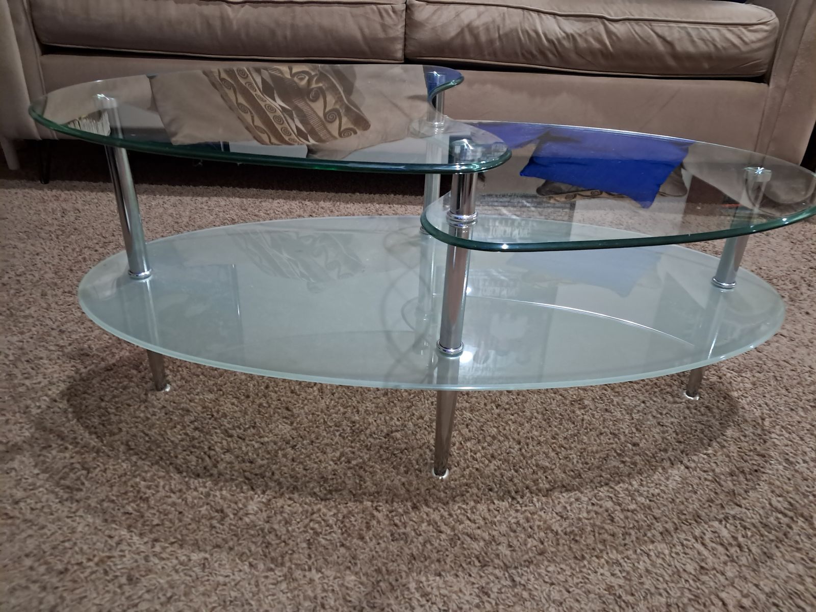 GooglePayCoffee table has a durable structure made of tempered glass and metal legs, ensuring stability and ease of movement