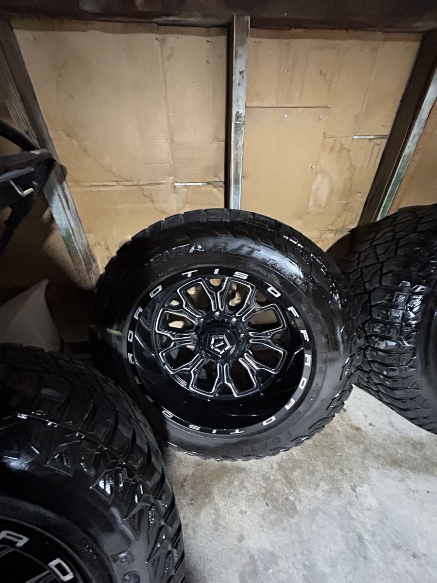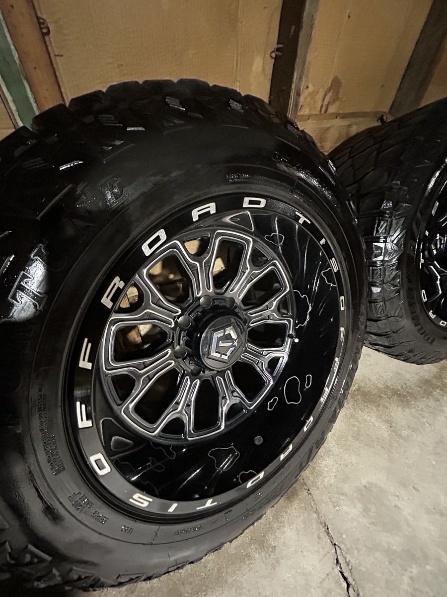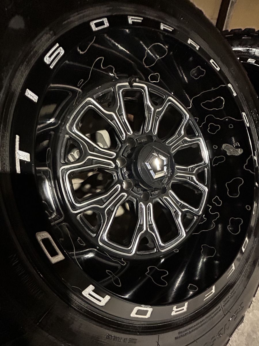 Nice set of wheels. Guy I got them from engraved cow prints in 2 of them. Clean wheels no curbing tires have I’d say half ish there in good shape 1300