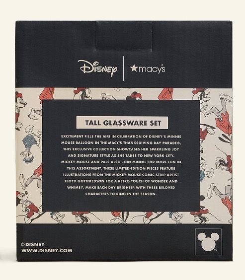 Tall Icon Mickey Mouse Motif Glassware, Each box contains a set of 4,