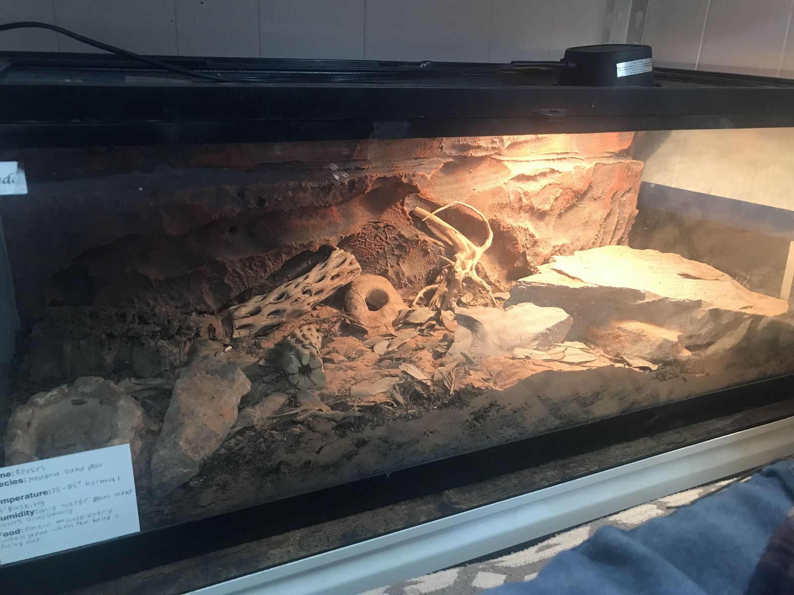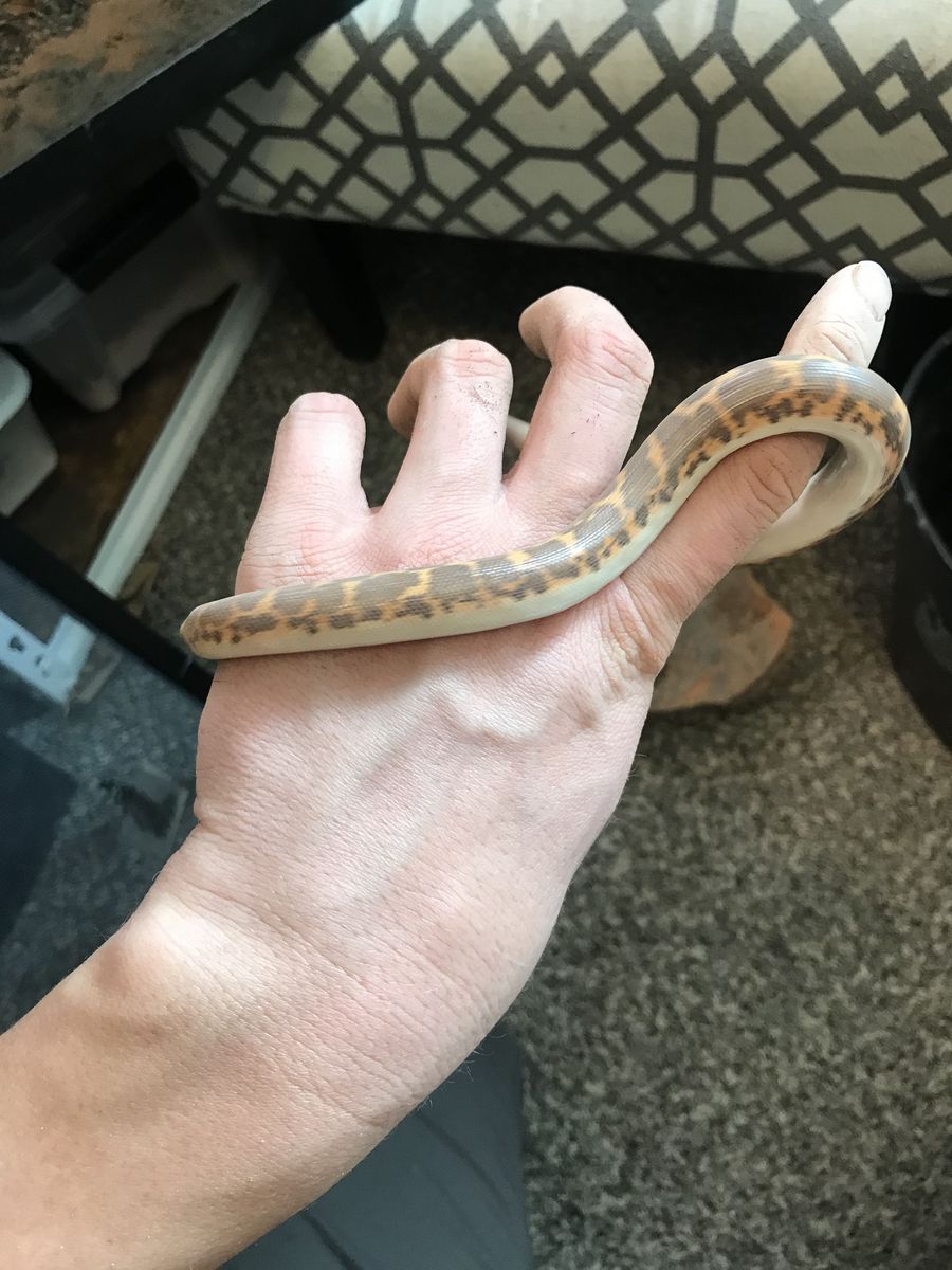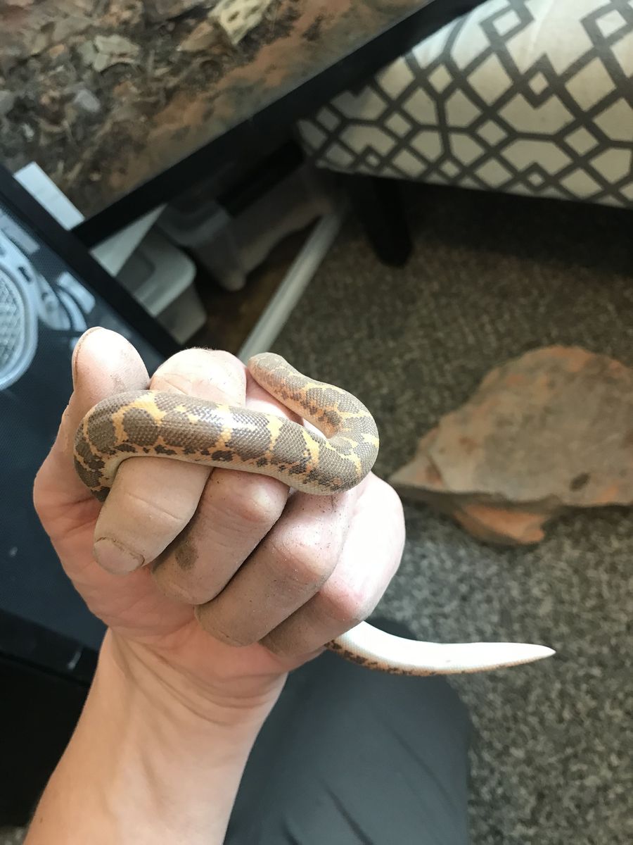I’ve got a young male Kenyan sand boa I’m selling with his enclosure. It’s a 20 gallon long top open. I had it set up as a bio active but the plants have died. He spends most of his time hiding, but I will catch them out in about every once in a while which is fine. I’m currently feeding him frozen thawed pinkies. I’ve had him for about a year and a half, the breeder I got him from was having a hard time getting him to eat. I’ve gotten him to the point where he takes frozen thawed just fine. He is on the small side but he’s healthy.