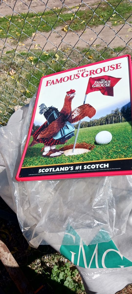 2 Scotland scotch Famous Grouse golf tin signs. $15 each or both for $25.