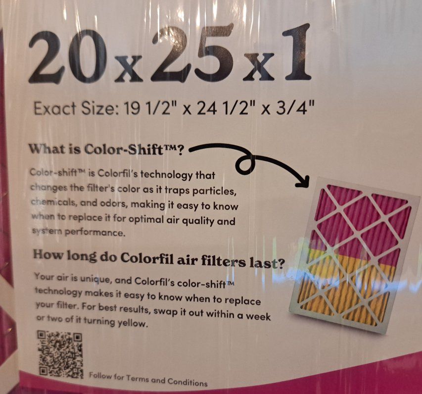 New in box colorful Furnace filter for Homes with Pets 20×25×1 Changes color when it needs to be replaced 5 available $ 15 each thanks for looking (paid $22 each)
