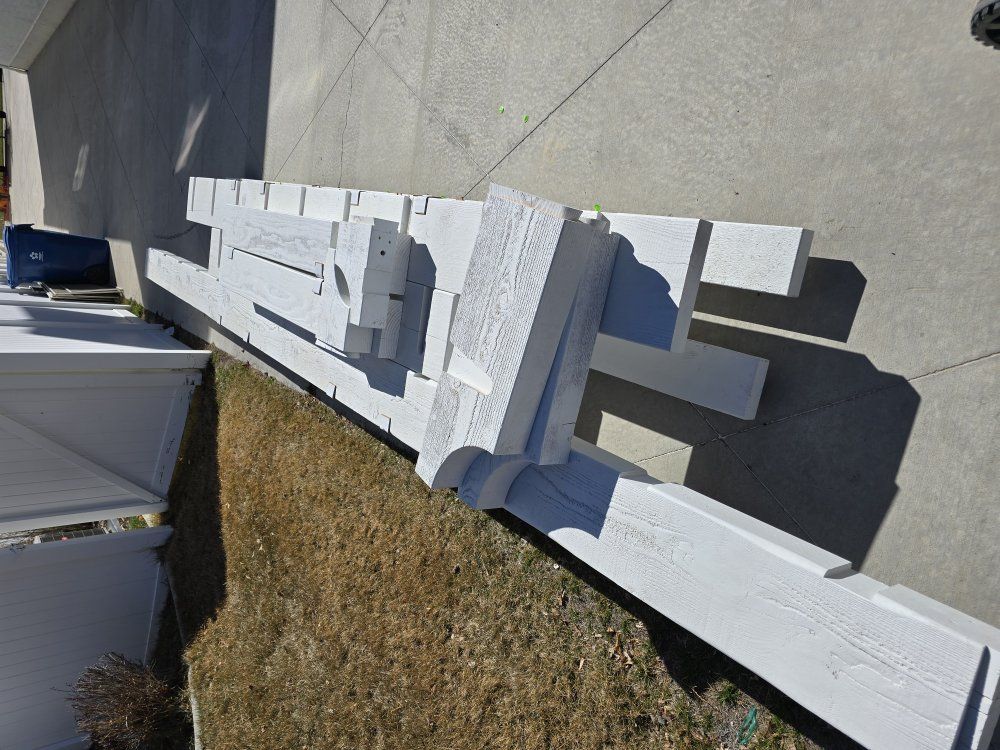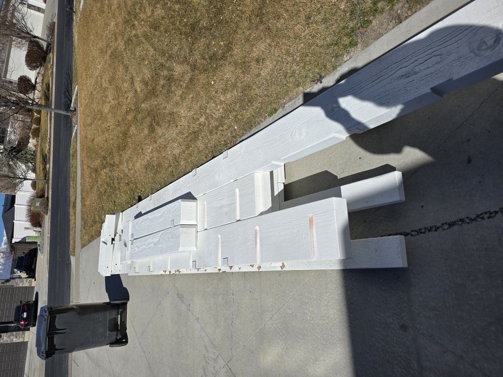 custom made for a 22 foot wide 2 car garage that ended up not using. Never installed. Beautiful white painted Timbers with all the bolts and screws and schematics. Paid over $6,000 first $3,500 gets gorgeous Timbers.