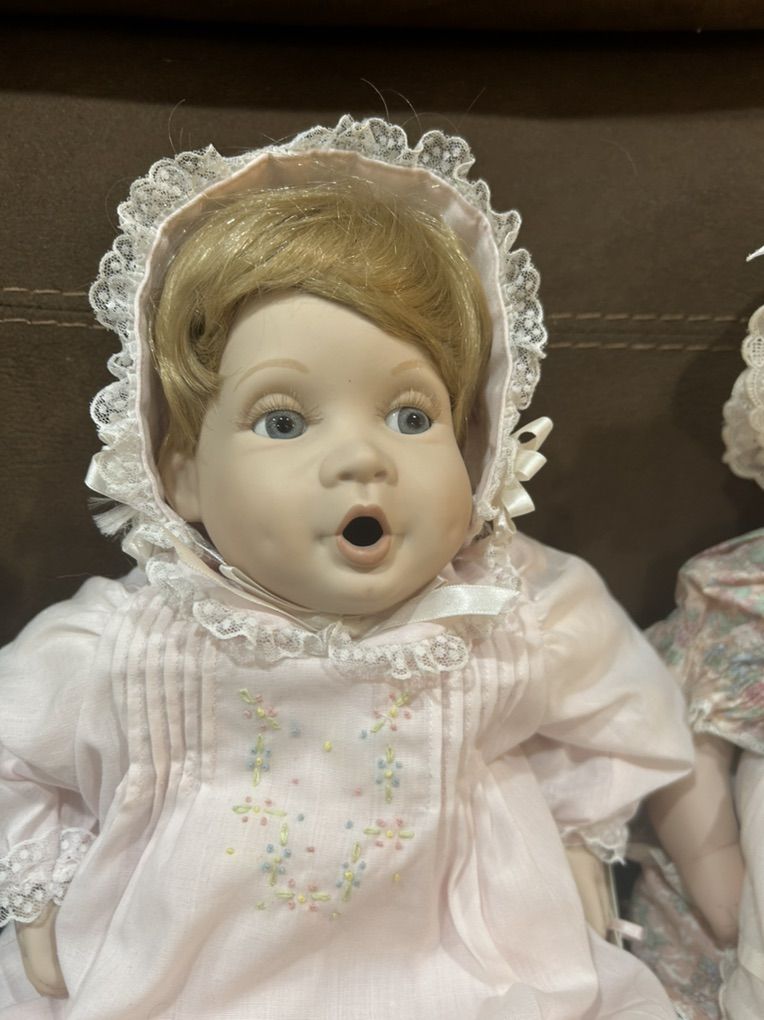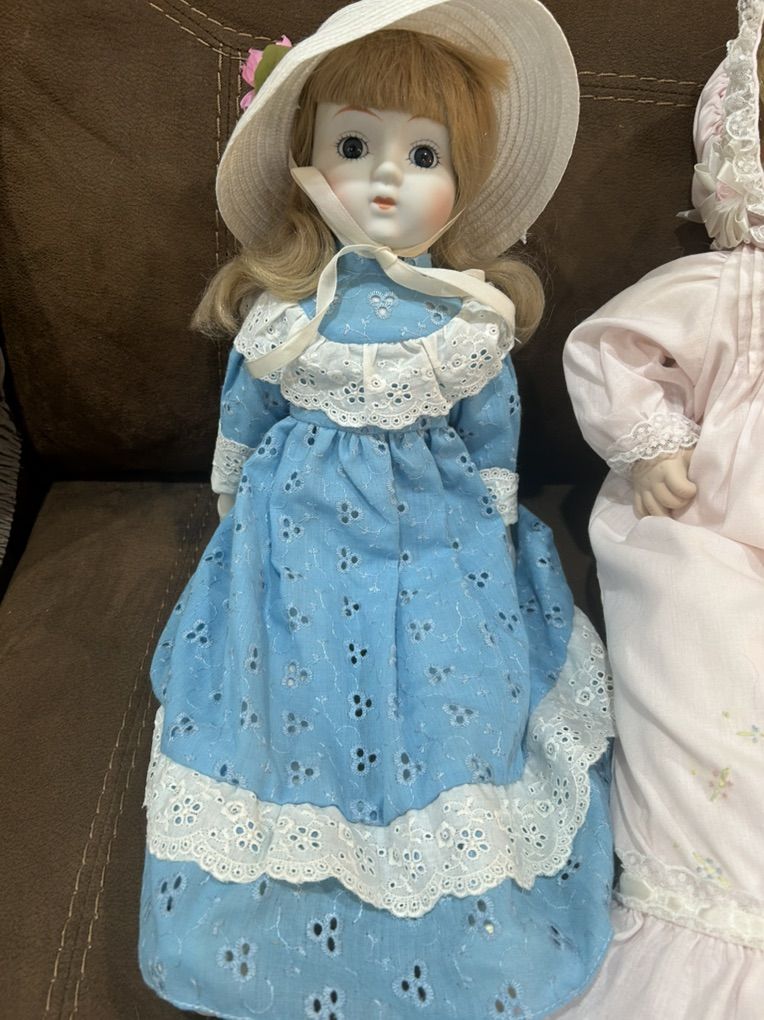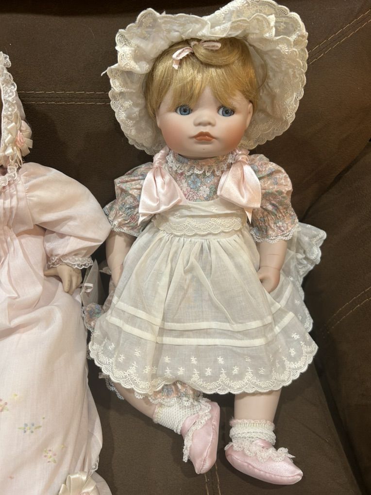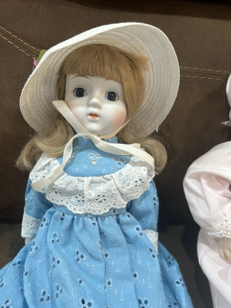 Fools for Collectors. One doll still has bubble wrap on her legs. Has been in curio and never played with z will sell all three for $40.00 total. Really cute and cared for. OBO
