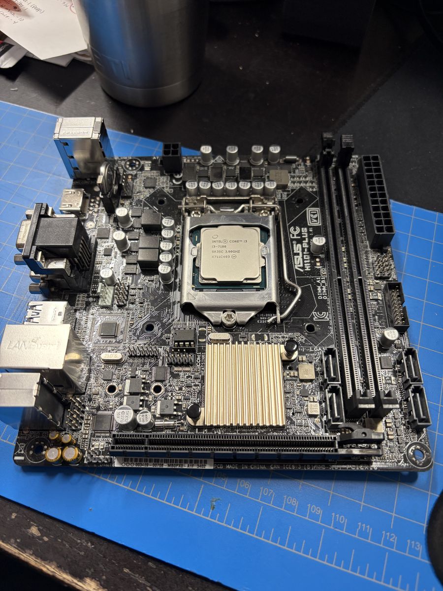 VenmoLightly used Asus H1101-Plus Motherboard with an Intel i3-7100 Processor and cooler. Tested, it is in working order
