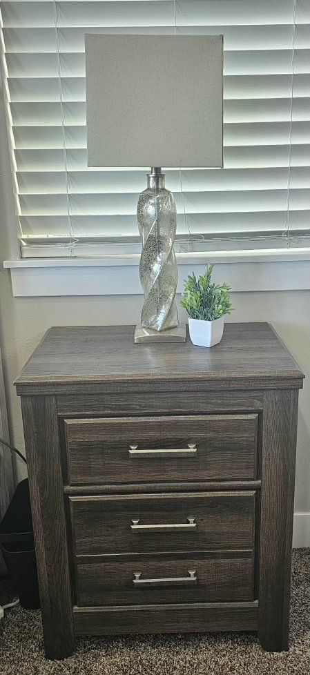 GooglePayMatching Queen bedroom set with bed frame, 2 night stands, one tall dresser, one long mirrored dresser. A blue burrito mattress ( there version of a Purple mattress) and box springs. Originally from RC Willey. In excellent condition!