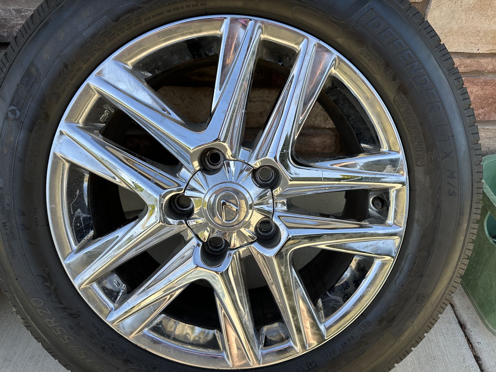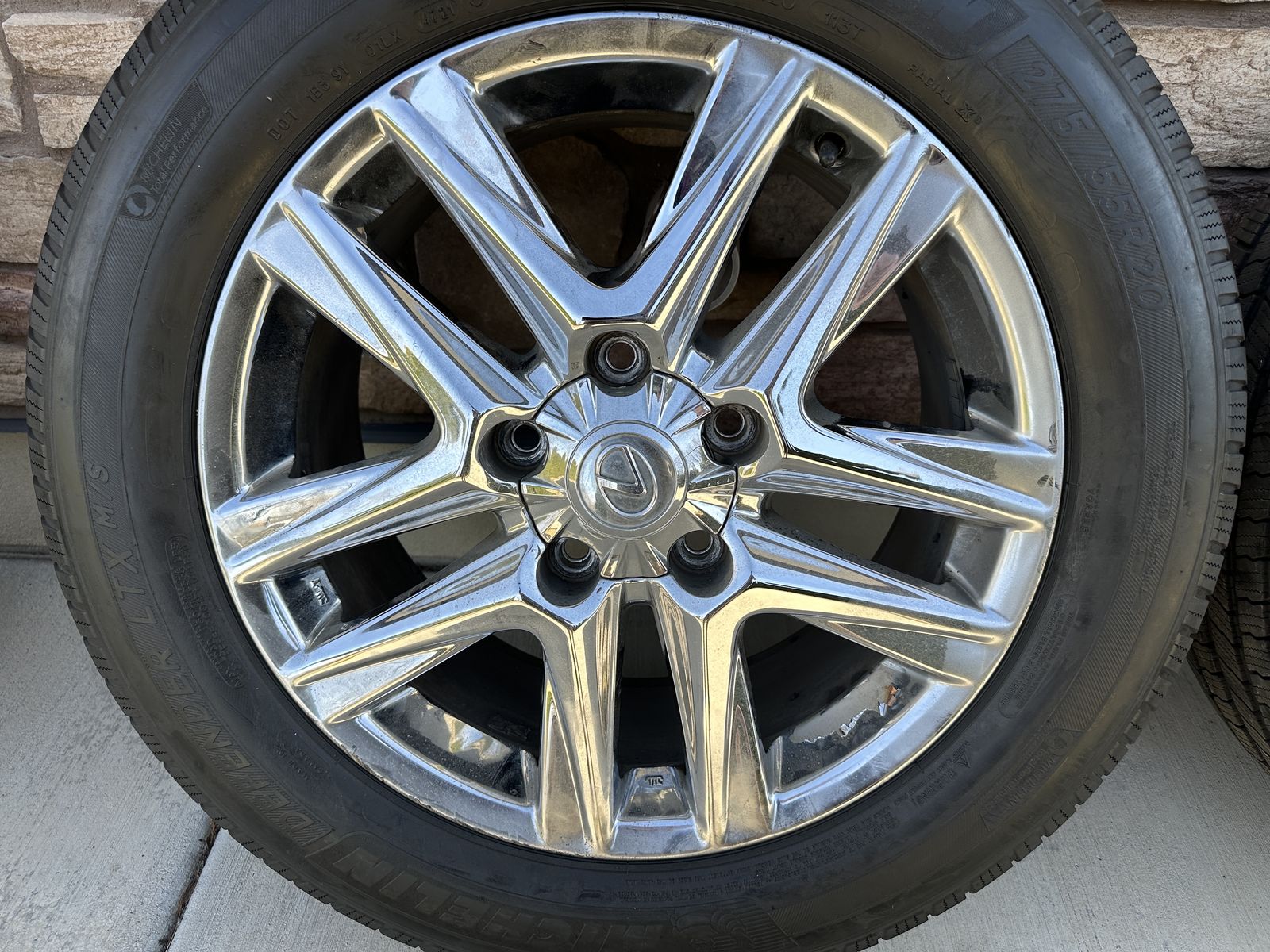 VenmoTake offs from a Lexus LX570. Should fit other full size Toyota products (Sequoia, Tundra, Land Cruiser). 5x150 bolt pattern. Currently have 275/55r20 Michelin Defenders mounted that all have good tread, one has more wear than others from an apparent alignment issues.