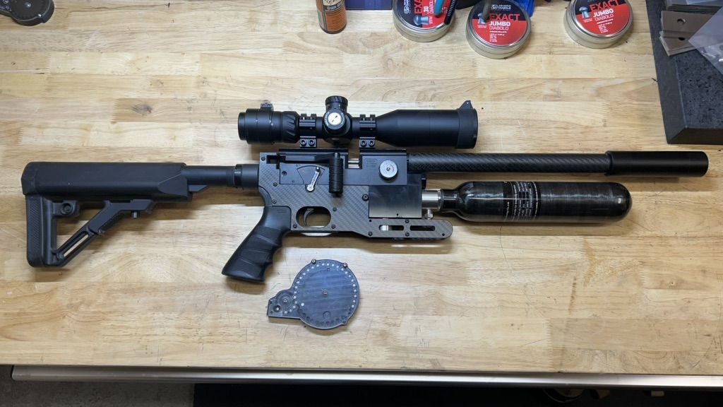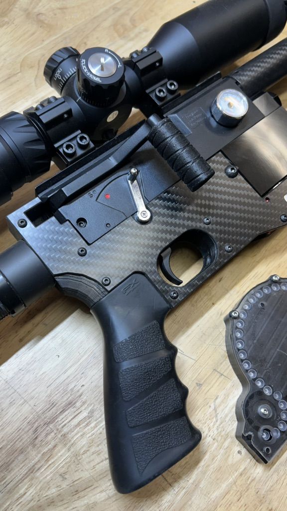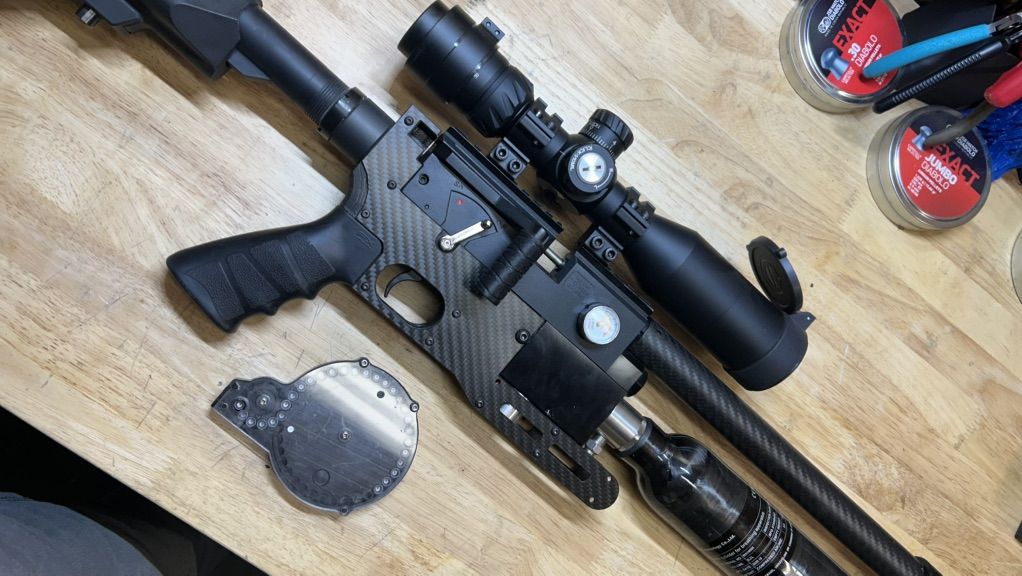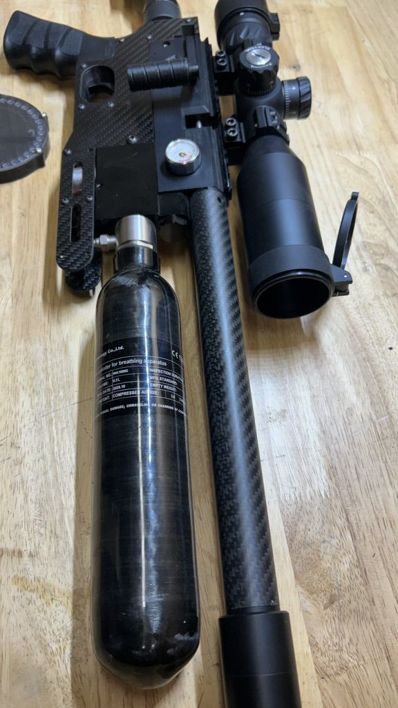 PayPalThis is my beloved AirVenturi Avenger .22 that I built for my own use around my property. I don't use it much anymore and would like to pass it on to someone who will use it. This little Avenger is powerful and is shooting 18 grain JSB pellets at 940 fps. It has included with it, one of my own AE Swede 36 shot SideWinder magazines for plenty of fun between reloads. It has a .3L 4,500 psi bottle for lots of shots per fill. Upgrades and mods include, a shortened and accurized barrel, A carbon fiber barrel shroud. A .3L bottle with my AE Swede bottle adapter, a carbon fiber chassis, AE Swede oversized plenum, AE Swede trigger upgrade, larger side lever handle end, FX Impact grip, AR adjustable butt stock, .22 Moderator, AE Swede 36 shot SideWinder magazine, and a very nice Discovery Optics first focal plane HD 3-12 x 44 scope with lighted rectal. Total cost for upgrades was around $700, The scope was around $250. The airgun its self was $350. I just rebuilt the regulator so it's ready to go for someone. This is a very accurate and light little airgun with a great trigger. It is a joy to shoot and will not dissapoint. It holds it's own very well against airguns costing thousands. Things are tight for all of us at the monent I know so I am will to trade for something as well. I like motorcycles a lot. Always interested soemthing like that. Anything else just send me a text with what you've got that you want to trade. Thanks for taking a look.