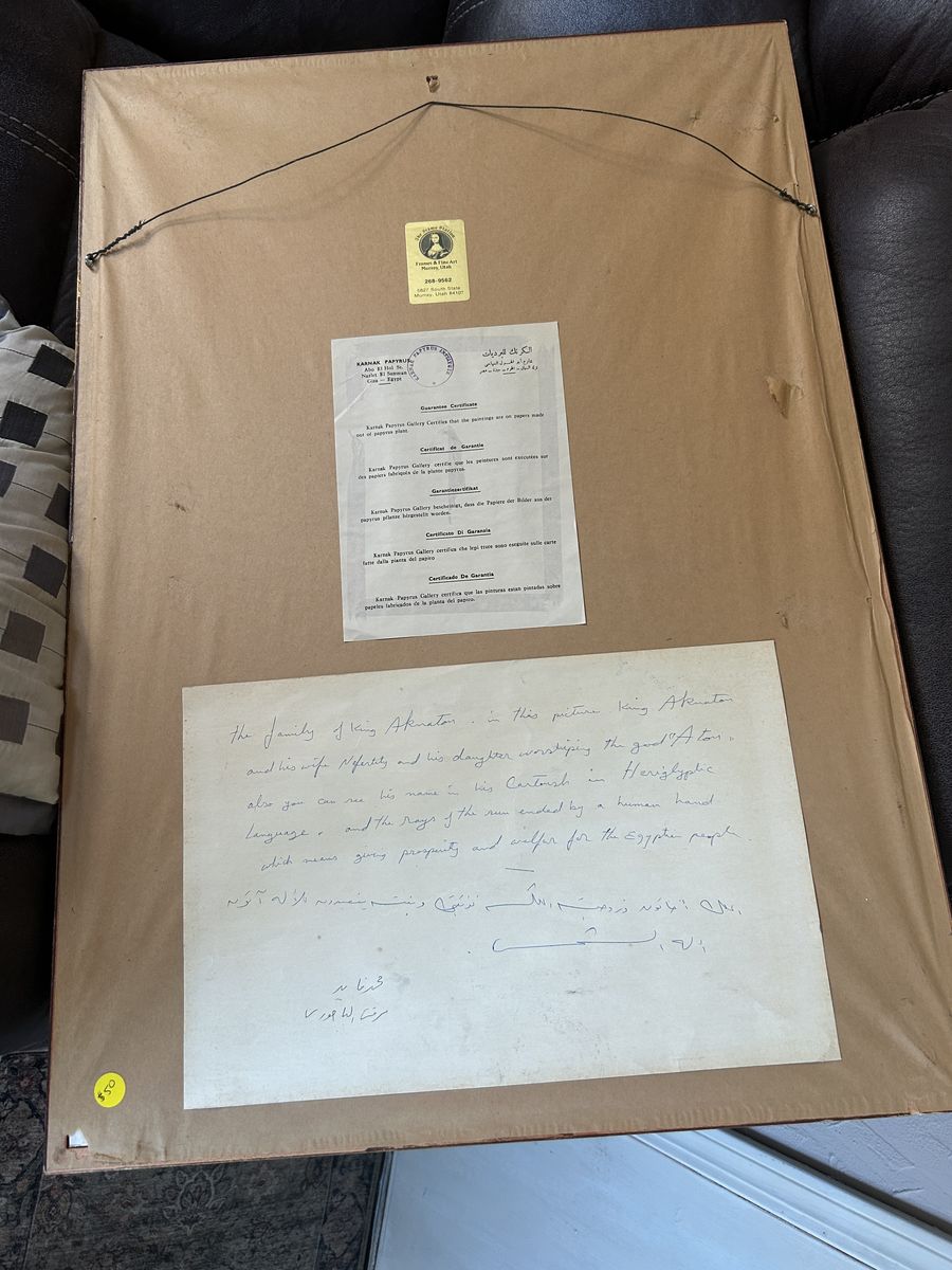 • Large certified from Egypt on Egyptian papryus, framed piece: $50