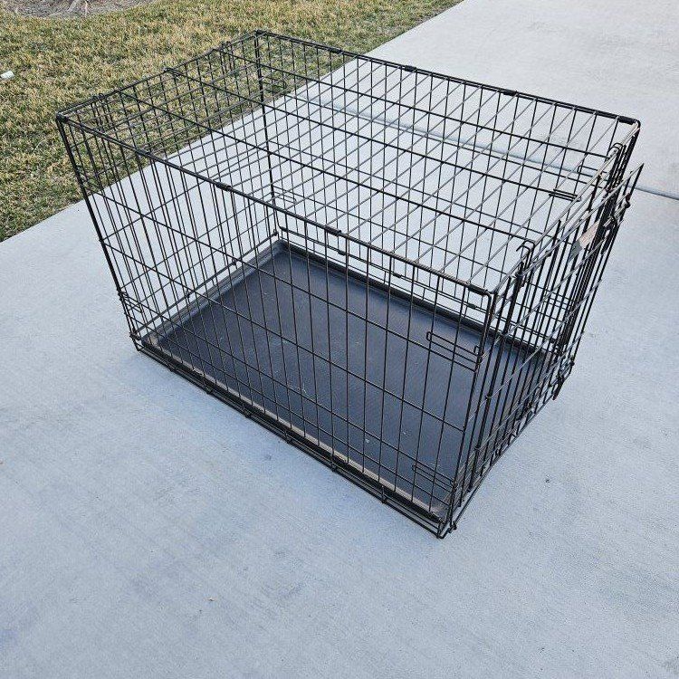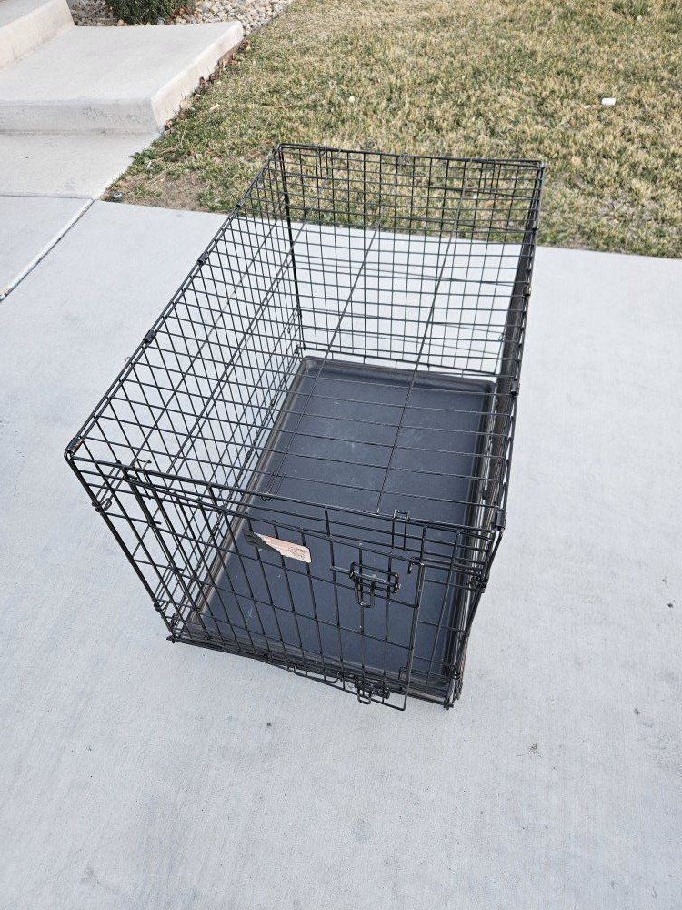 Midwest 36x23x25 Dog kennel. we received it when we got our dog over a year ago. We used it a couple of times before realizing he hated it and did better out then in. Not sure how much used before we received it. Its in good shape. Collapsible for easier storage. Retails for 60-70 asking 20. Text I will respond faster