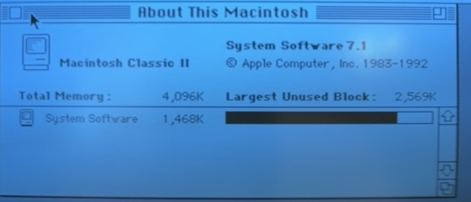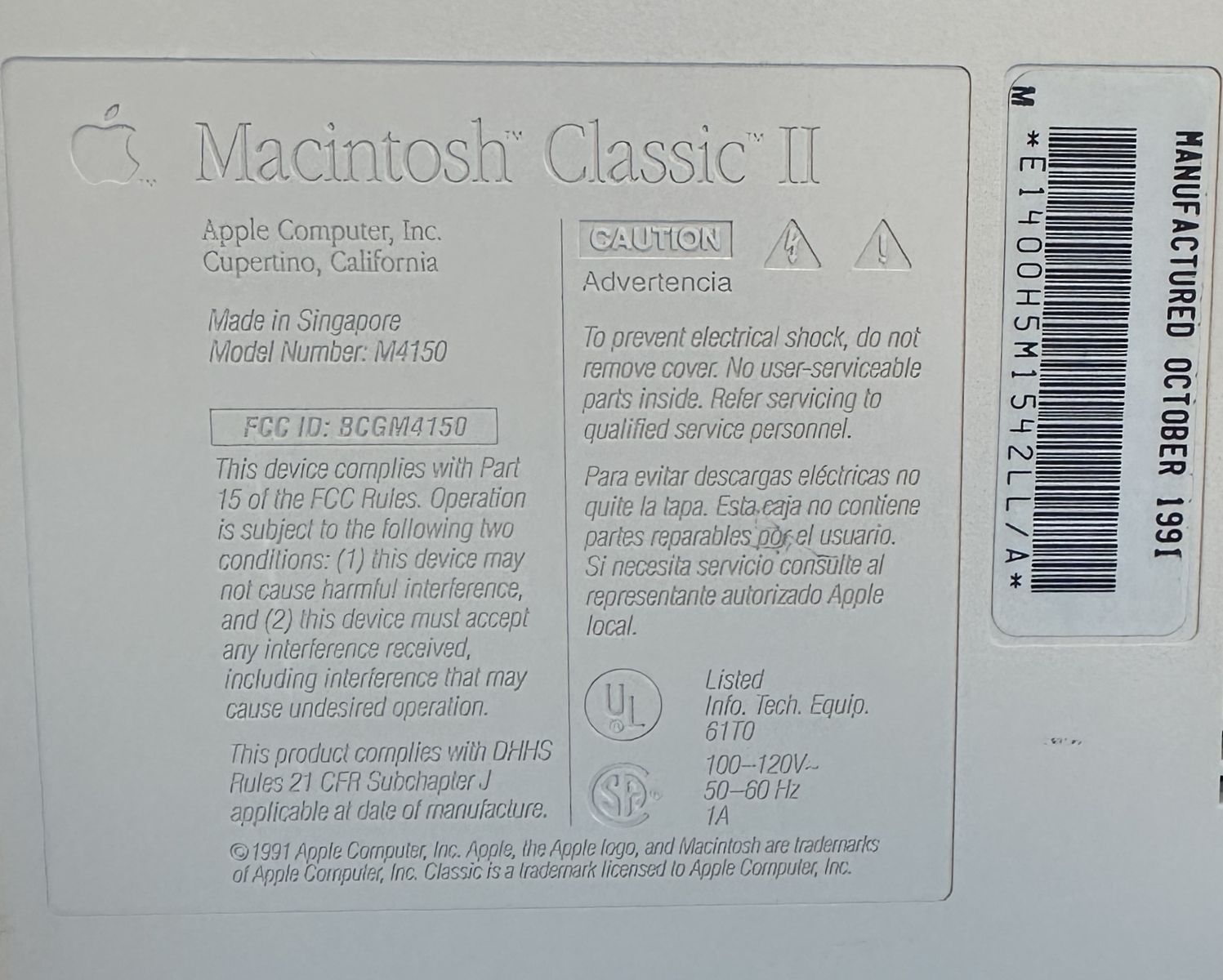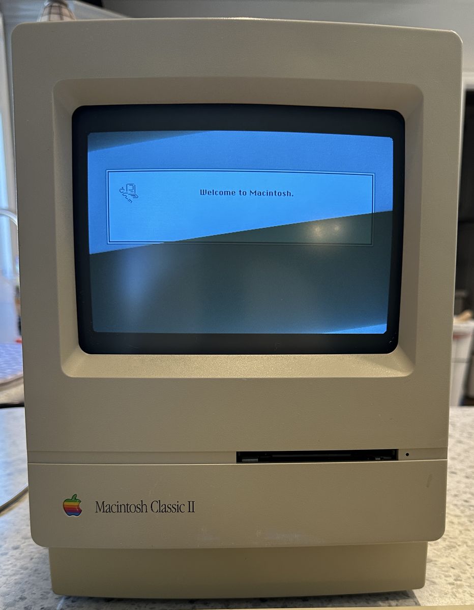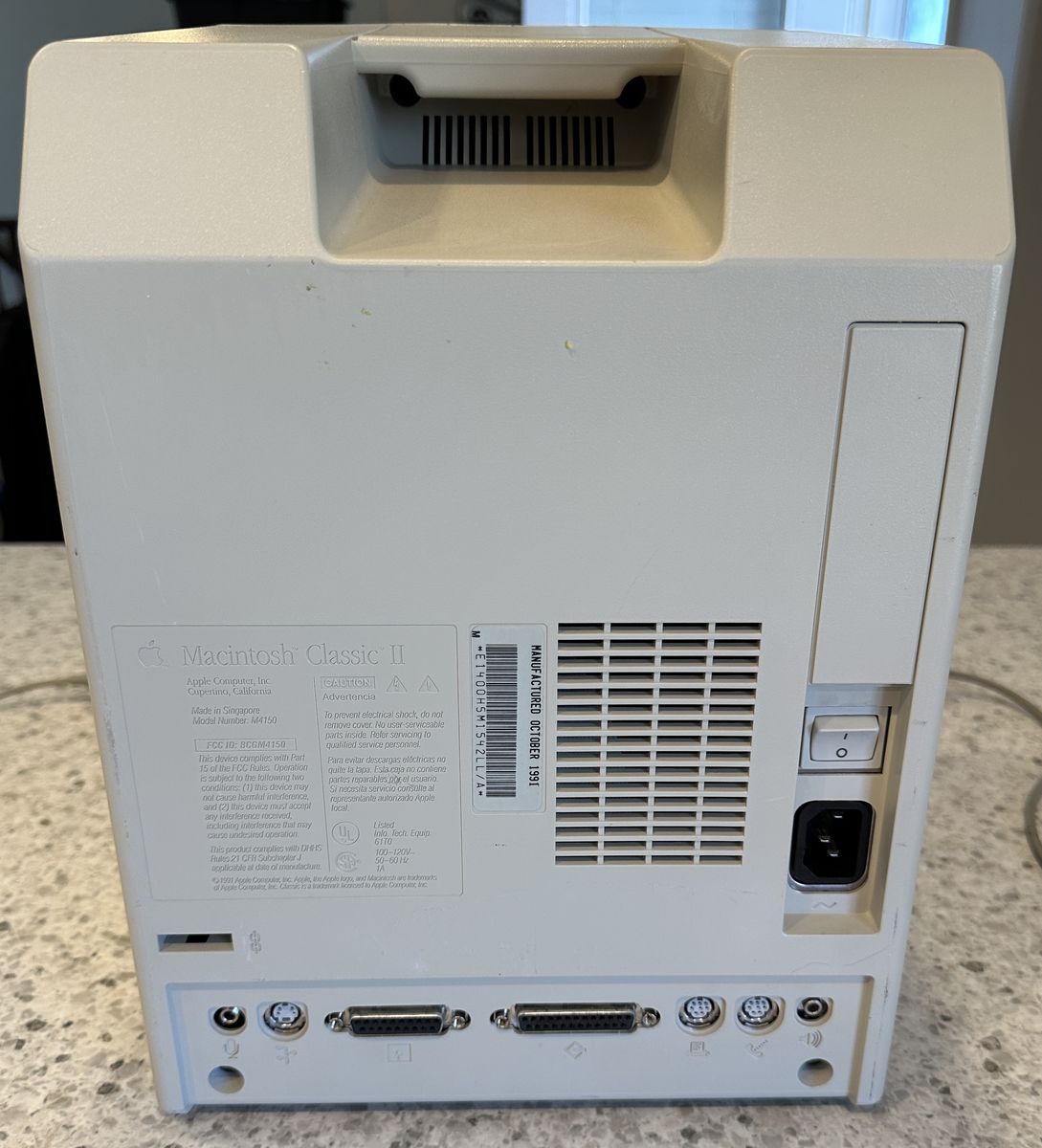 This Classic II has been tested and boots from the 20MB SCSI HD. It has System 7.1 installed. It has 4MB of RAM. This unit is clean and runs great. The case (mouse and keyboard too) have a bit of yellowing as in normal for a vintage computer