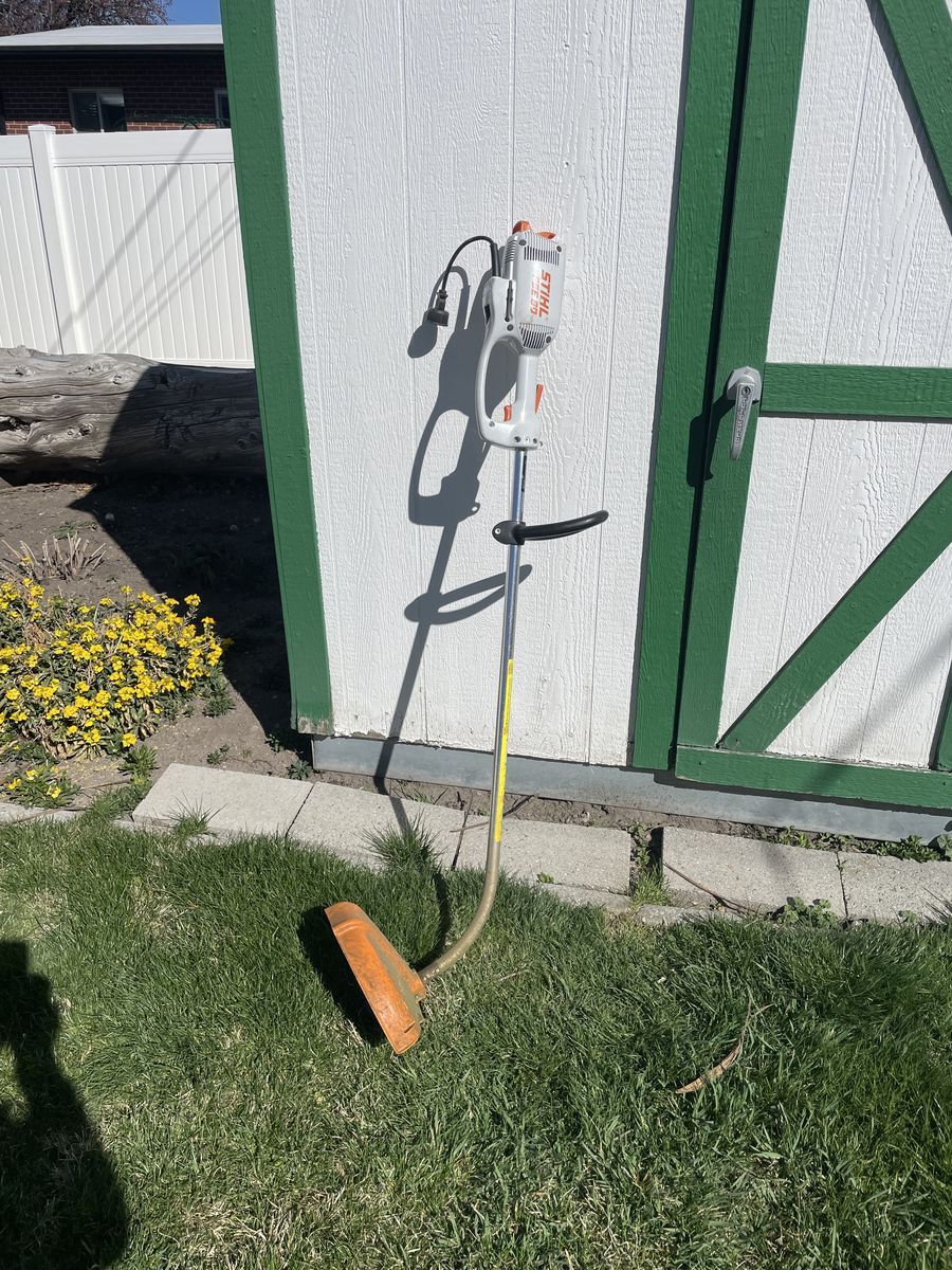 Price reduced! This is a used Stihl electric string weed wacker. The handles are well balanced and it runs great. Reloading the string into the head is a manual job and otherwise it is a capable tool. We upgraded and would like to see this continue to be utilized! It's yard work season, this is a solid trimmer.