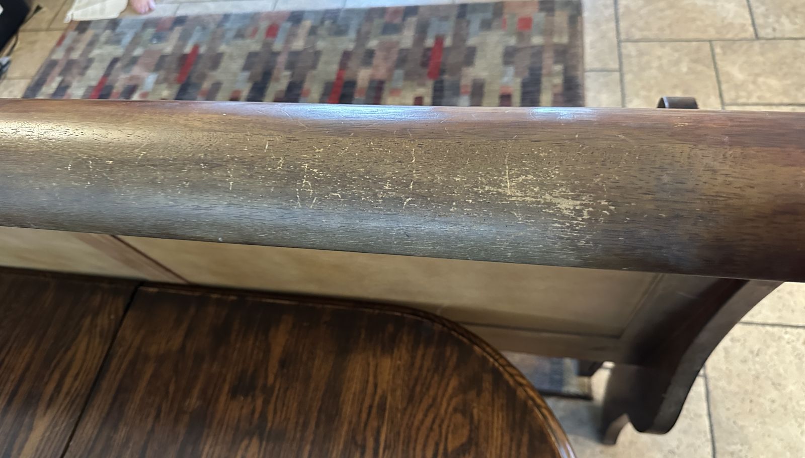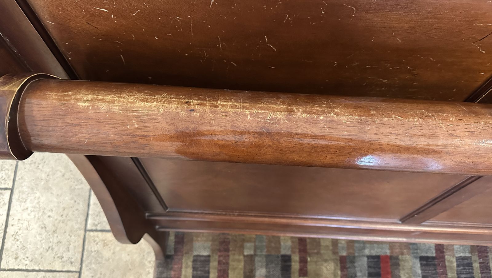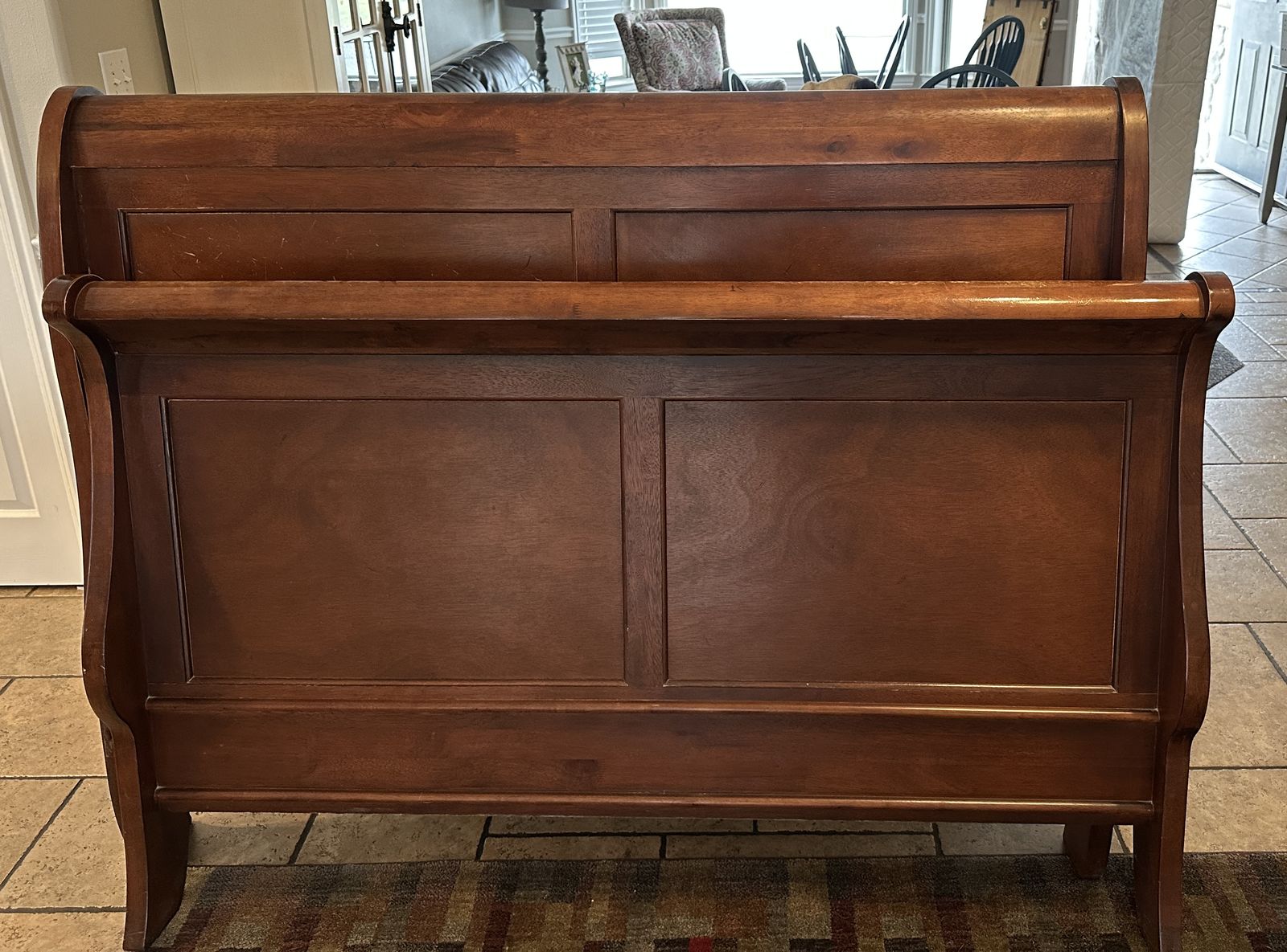 VenmoThis is a nice, sturdy queen-sized bed frame. It is still in good working condition with no broken side rails, etc. As the pictures show, it does have some scratches on the foot board and it does show some sun exposure on the head board.