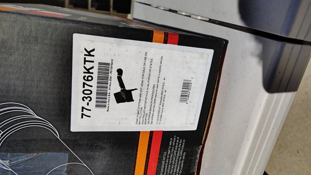 Venmok&n cold air intake fits a 2011 to 2013 Chevy/GMC 6 l gas V8 part number 77-3076KTK comes with k&n filter cleaning kit asking $150 obo it was on my truck for about 2 years. reason for selling is I'm selling my truck so I took it back to the stock intake.