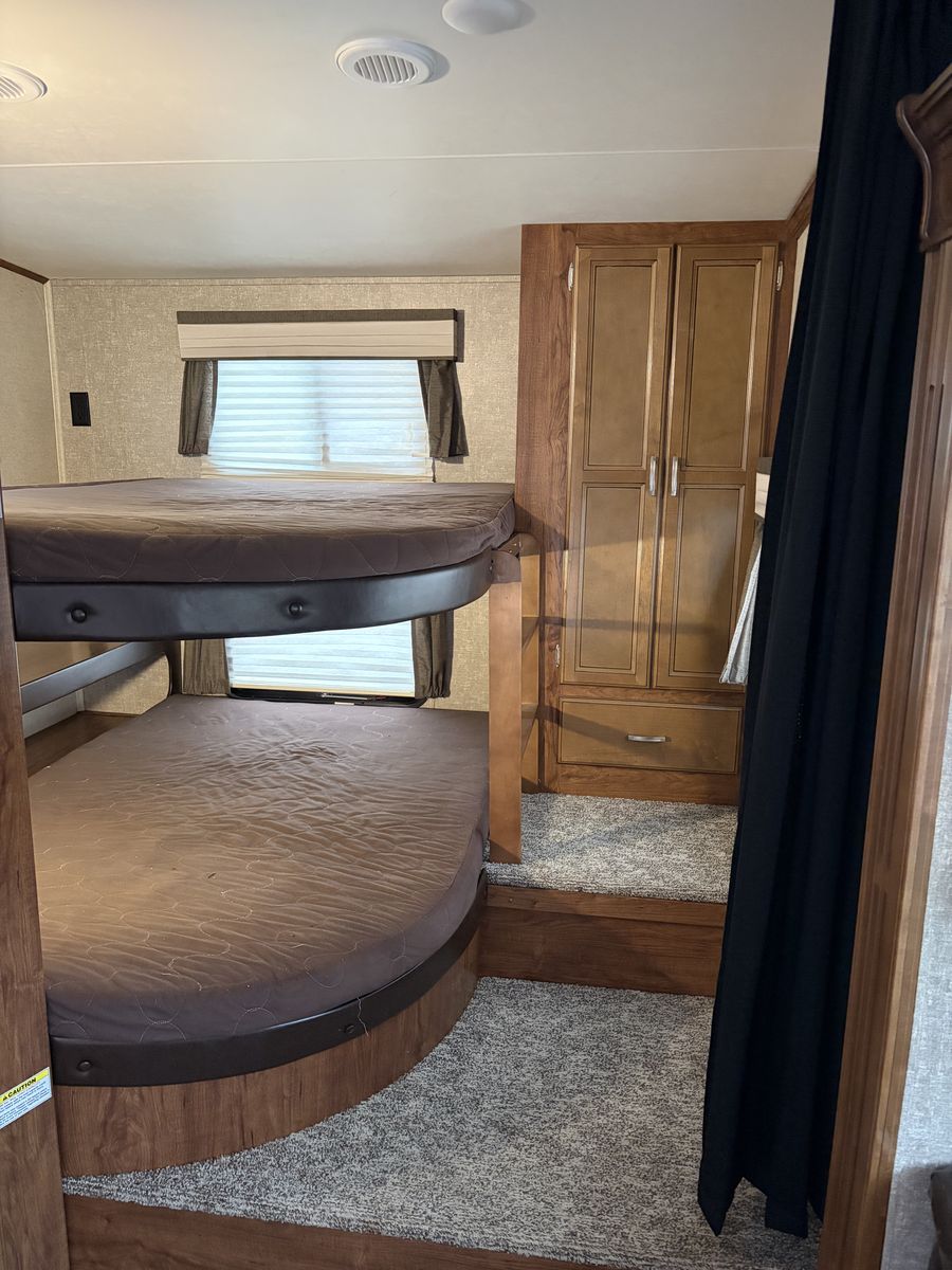 It’s time to get out and go camping, and this trailer is your ticket. Model 295BH is a 33’ foot Heartland Sundance XLT that has been well taken care of and cleaned after every outing. This has 2 slides, and two 100-watt solar panels are installed to keep the batteries charged. New tires were installed 2 years ago and are like new. Sleeps 6-8 people, with oversized bunk beds, a queen master bed, and a couch that pulls out into a full bed. Everything works as it should, and there are no leaks. It has a rear wireless camera that I will include to the new buyer. And it has a wireless level sensor that you use with a phone app to level it in camp. There is a lot more that I can’t remember right now. This has been a great trailer for our family, but we want a toy hauler, and that’s the only reason we’re selling. Located in Spanish Fork. Will add more pics as later. Will not respond to scammers