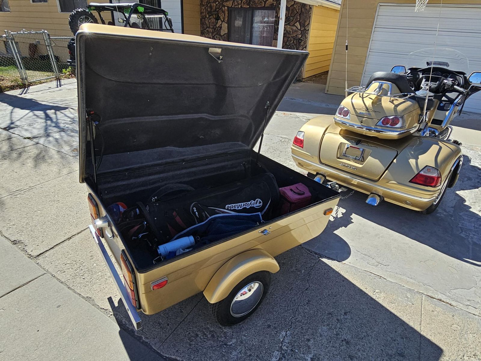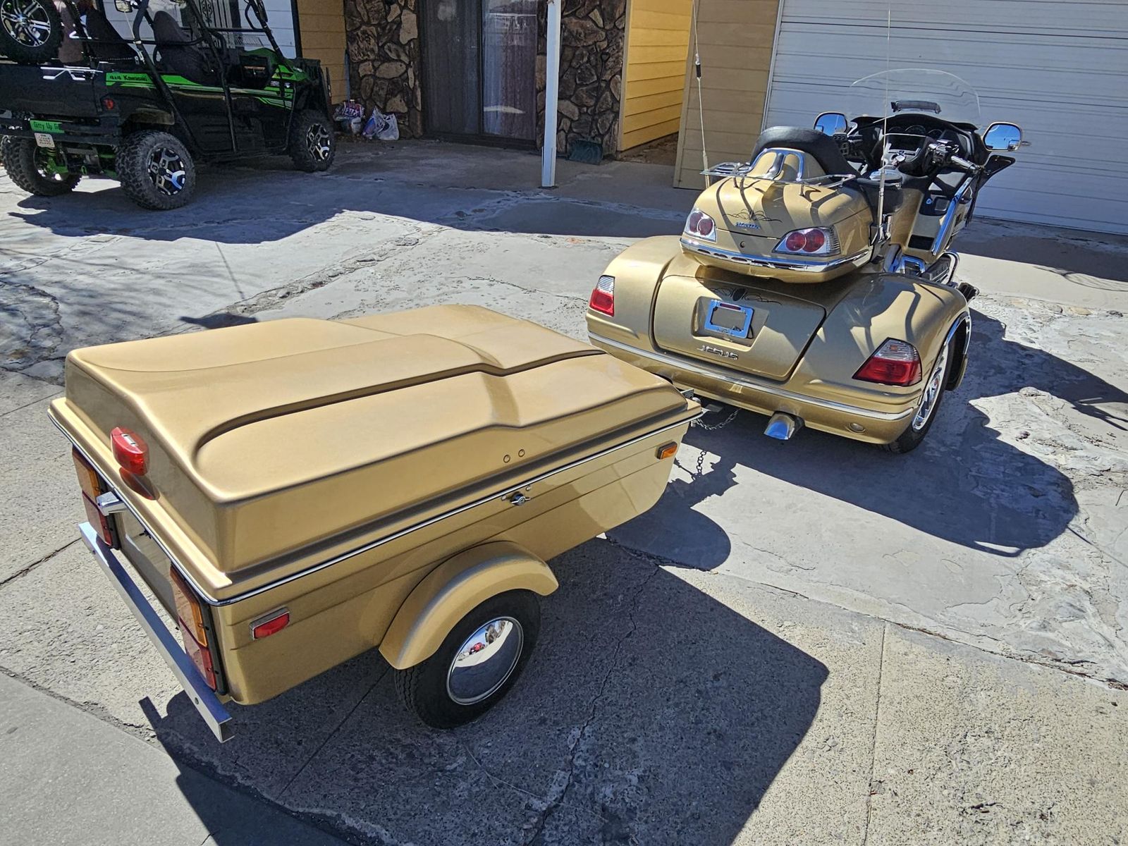 Great condition and runs beautifully. This bike has three new tires and the trailer has three new tires. New windshield, and a CB radio are included. This a very comfortable bike for a long trip, featuring plenty of storage in the trunk and the trailer.