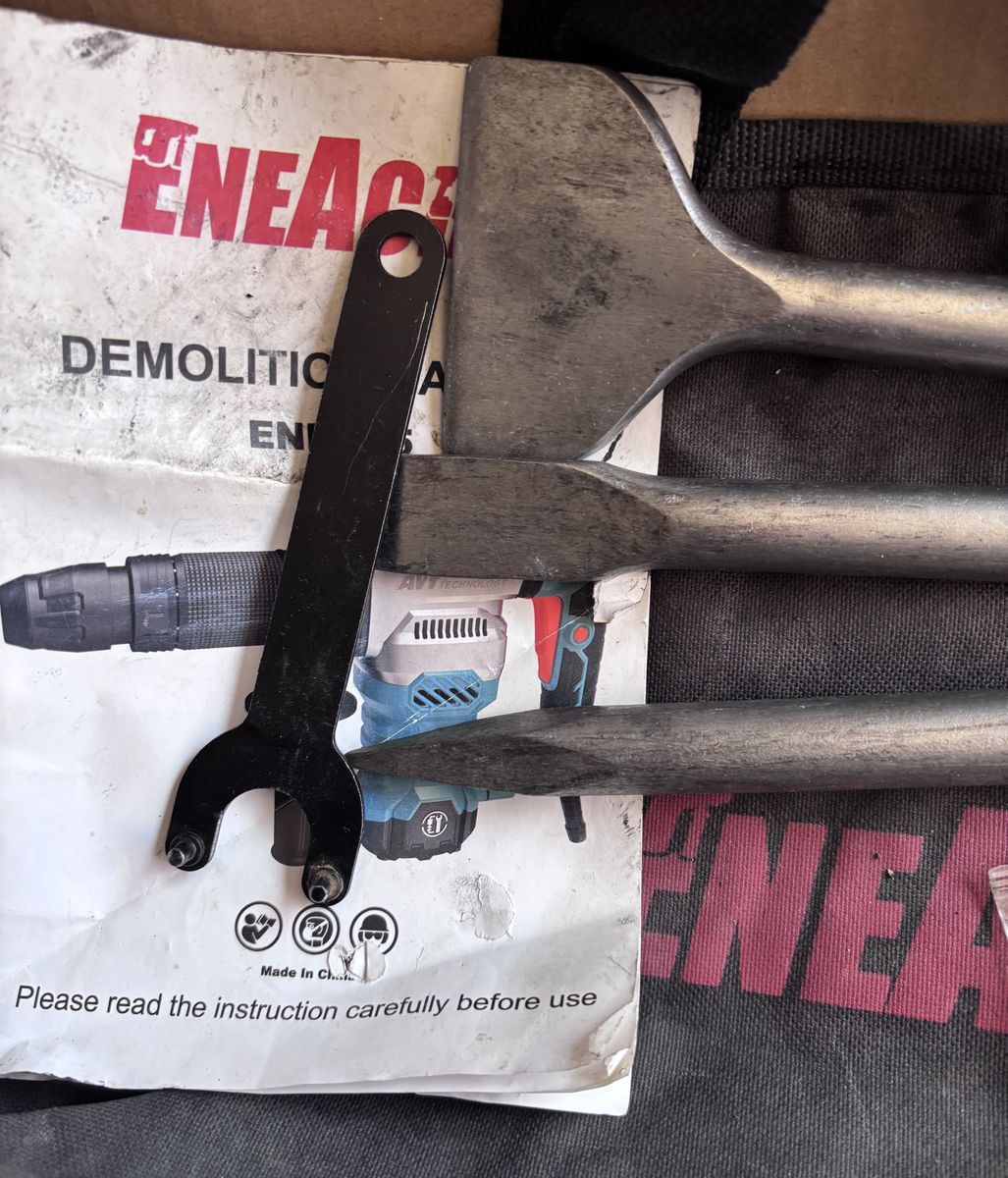 Used on one old brick demo job. Just cleaned the chisels, not gonna put them back in the plastic sleeves, which will be included, but I don’t know how to clean them.