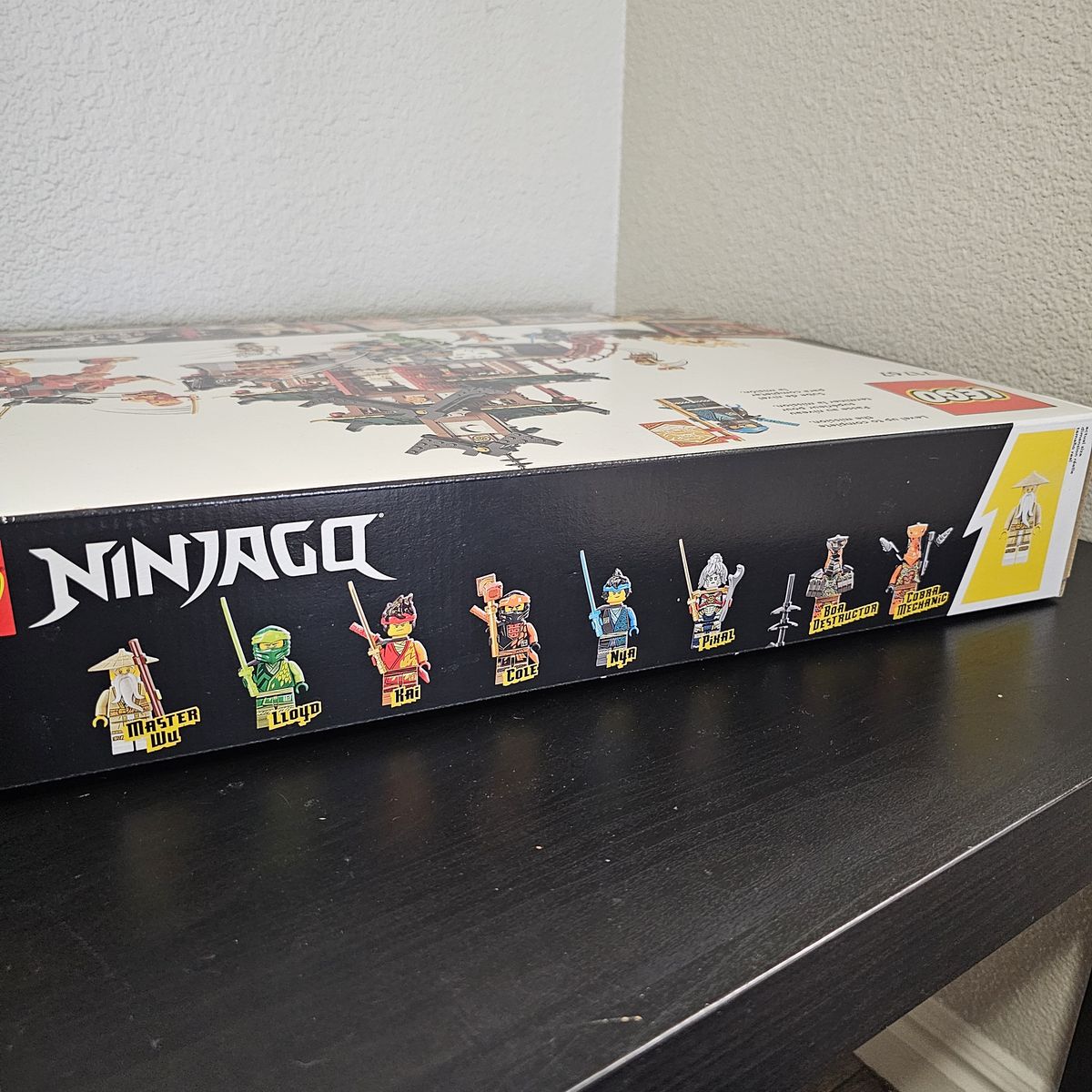 Minifigures: Master Wu, Lloyd, Kai, Cole, Nya, Pixal, Boa Destructor, and Cobra Mechanic. Builds: Dojo Temple, Kai's Mech, Rammer Vehicle Other: Box, Instructions