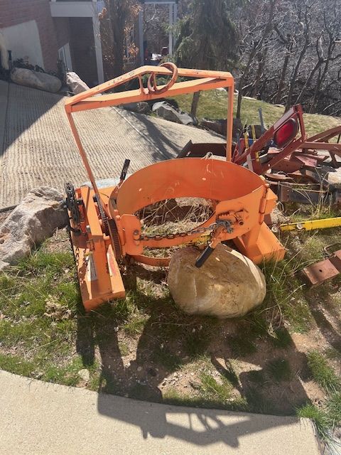 Forklift carrying and tilting drum duper. Used one time but has been sitting out side so has sun fade. This dumper also has overhead lifting capabillity. If you look up simeler dumper they start at $650.+