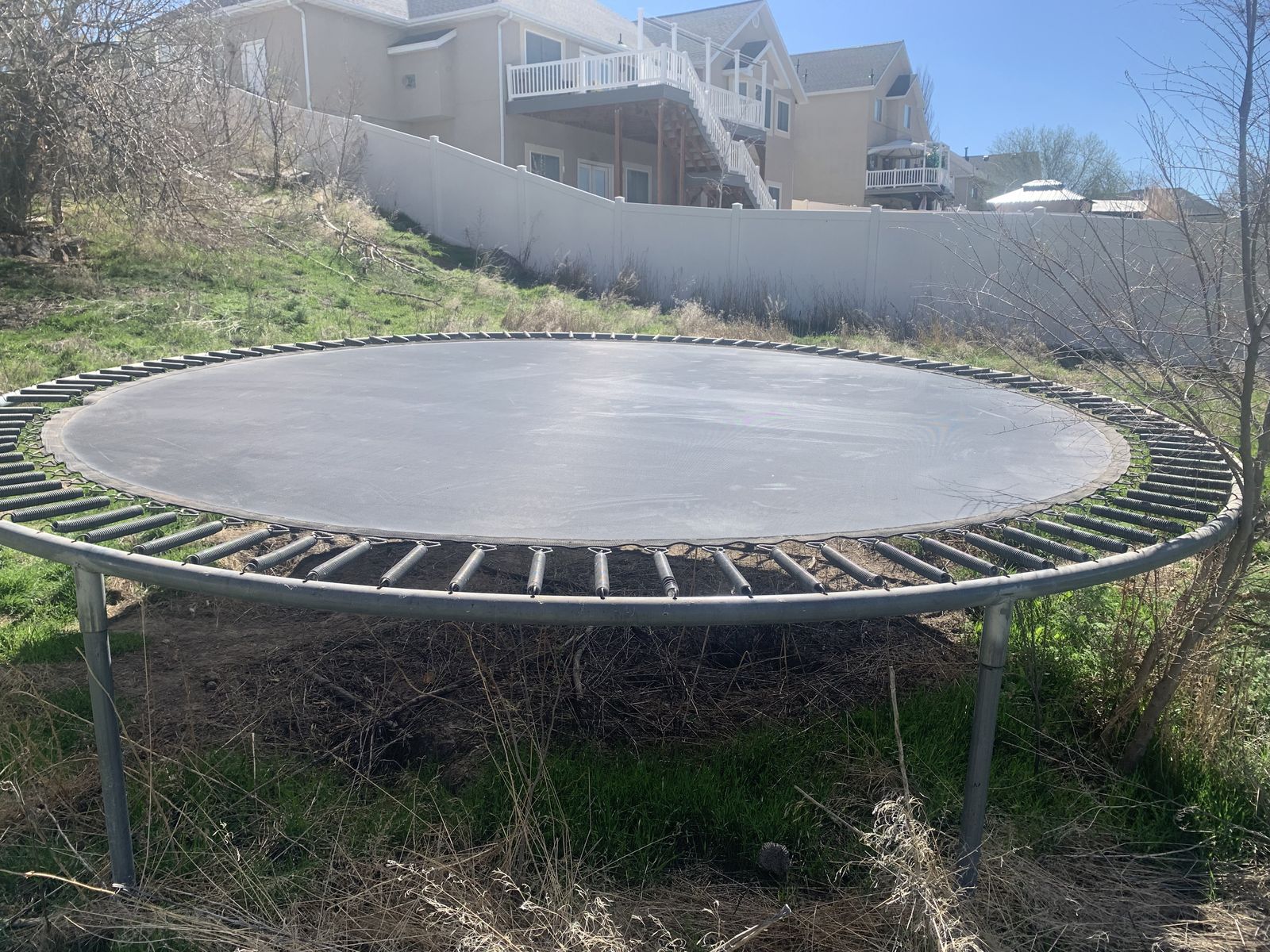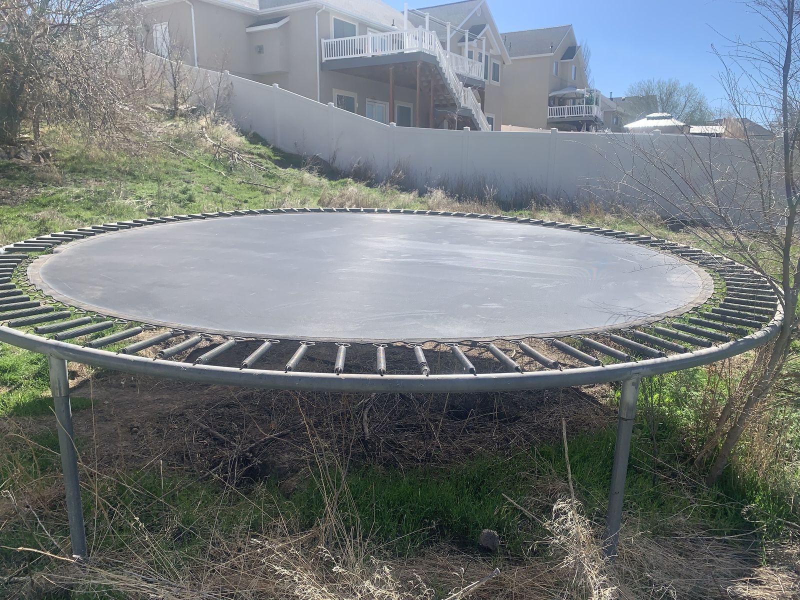 VenmoLarge above ground trampolin. Needs new skirt however bounce pad in great shape. Heavy mental anchors with great stabilit. Please email If interested. Moving later this summer and kids have all grown.