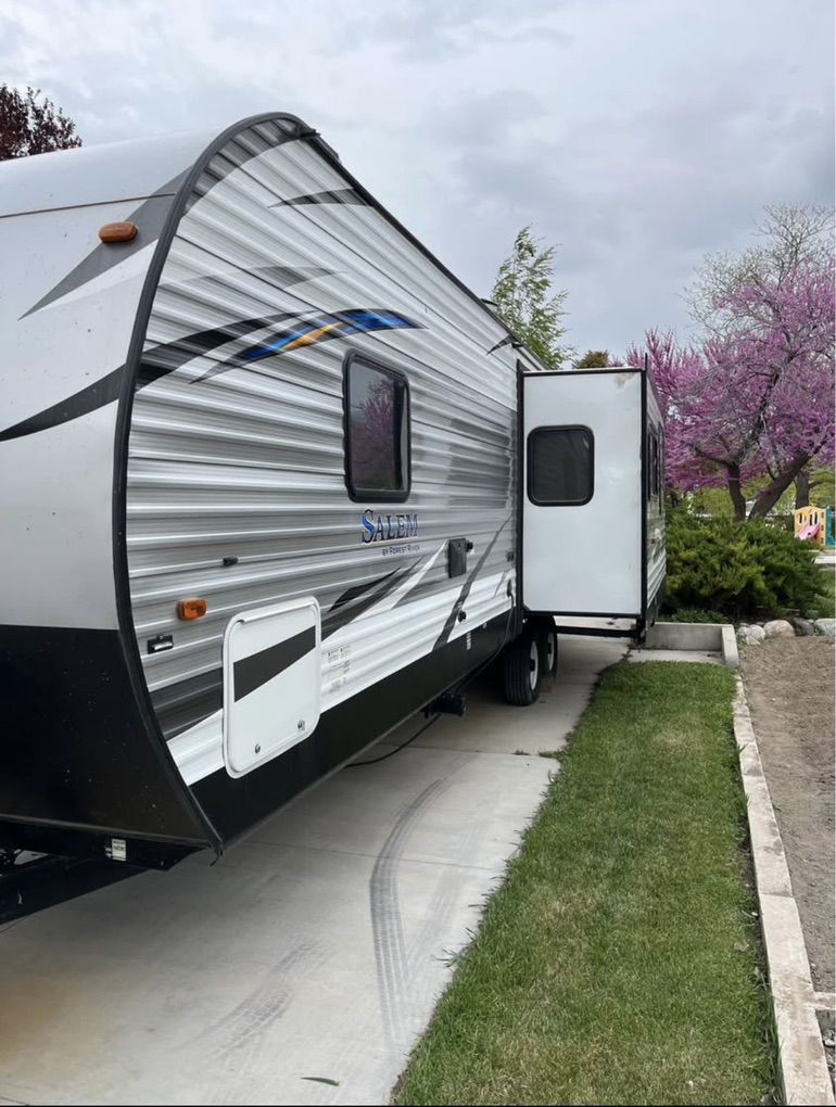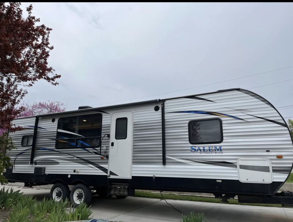 2019 model Forest River Salem. Only used a few times. -Jackknife Couch(fold down to bed), Dinette Table Fold Down, 2 Reclining Chairs. -Blackout Roller Shades -Power Hitch -Power Stabilizer Legs\