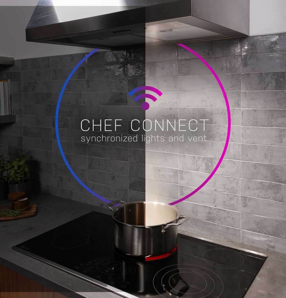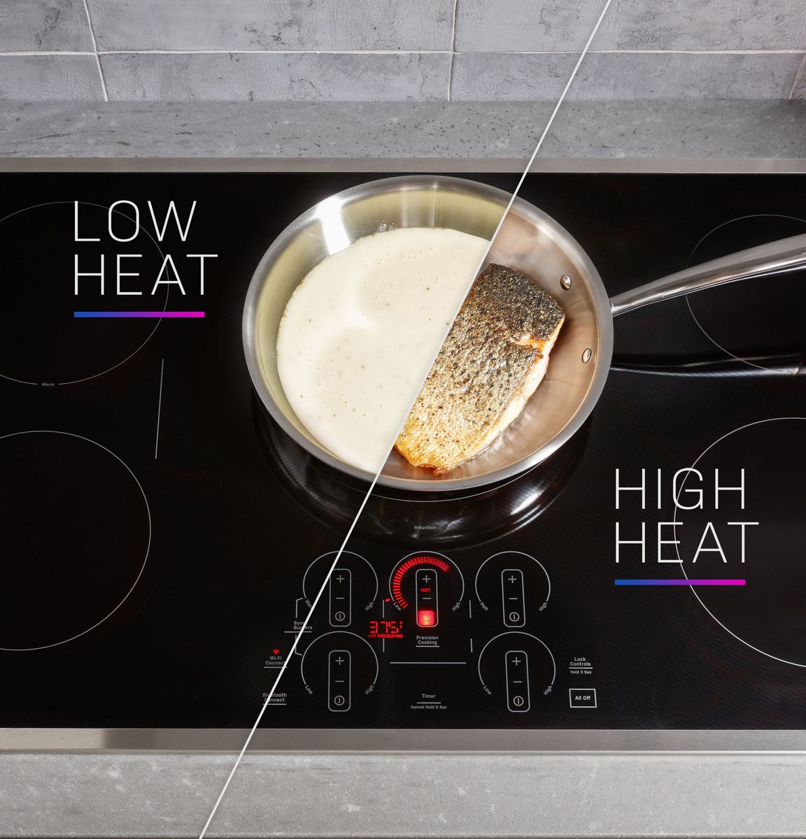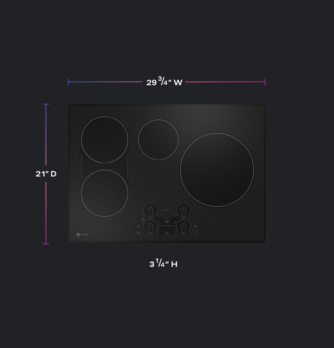 GE Profile 30-inch built-in induction cooktop features Chef Connect, built-in Wi-Fi, control lock and 4 cooktop elements.