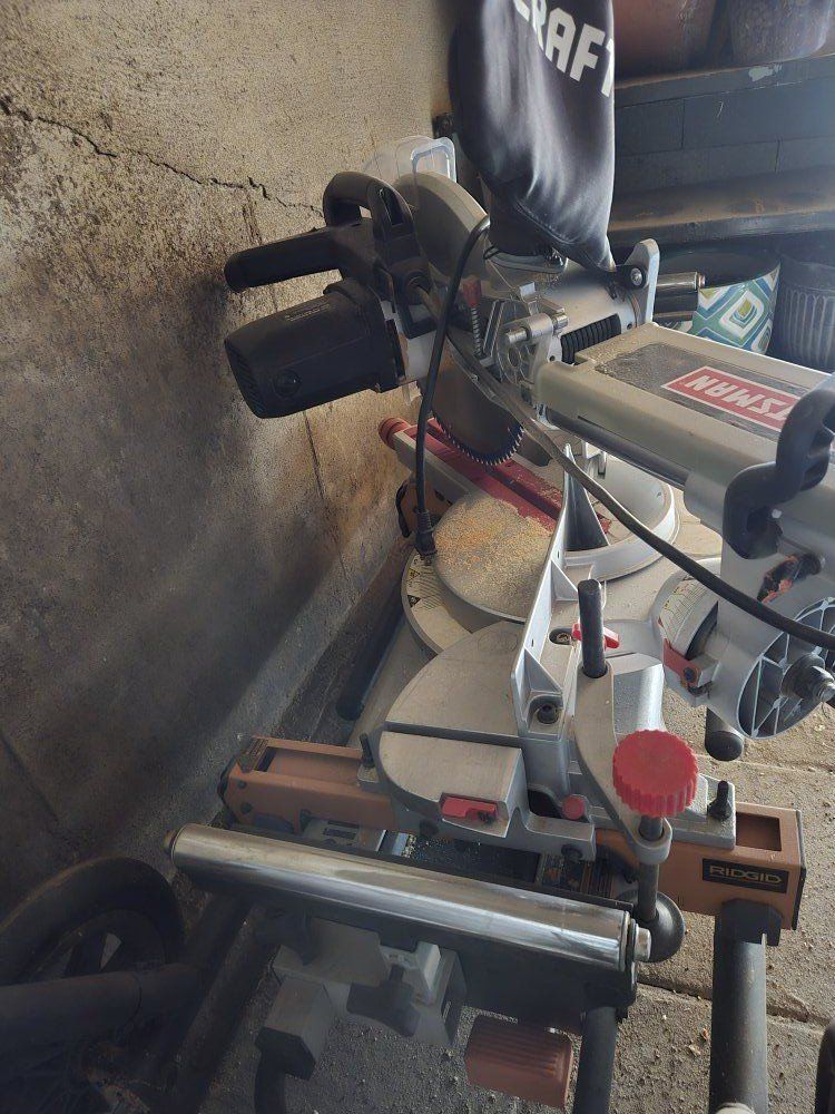 Venmoworks great. newer 12 inch blade. the stand is a rigid brand and it's collapsible with wheels for easy mobility