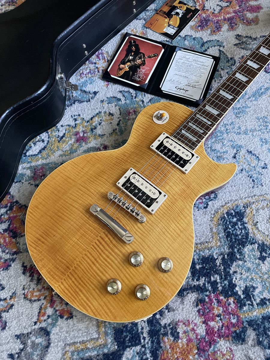 USA Seymour Duncan Slash signature alnico II pickups Orange drop capacitors Limited to 3,000 guitars Gorgeous color and flame top Comes with original Slash case COA and booklet Great shape New strings and set up complete