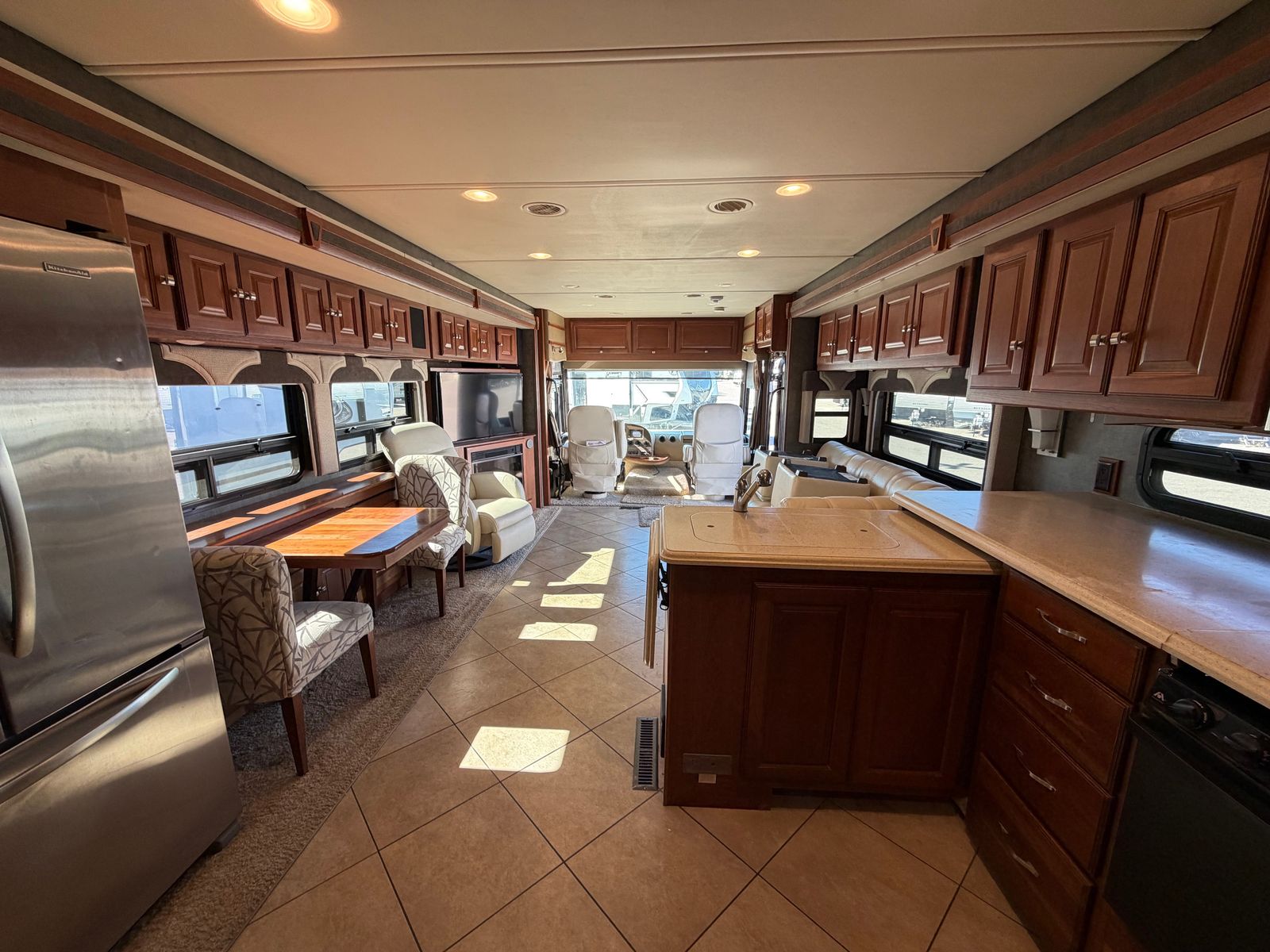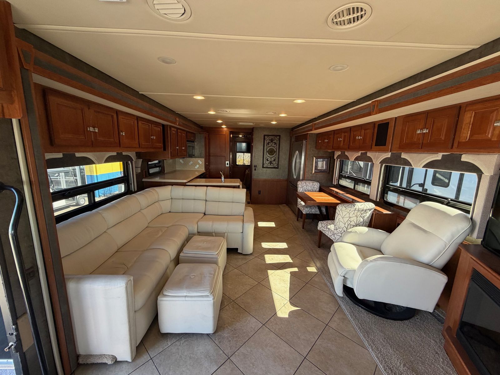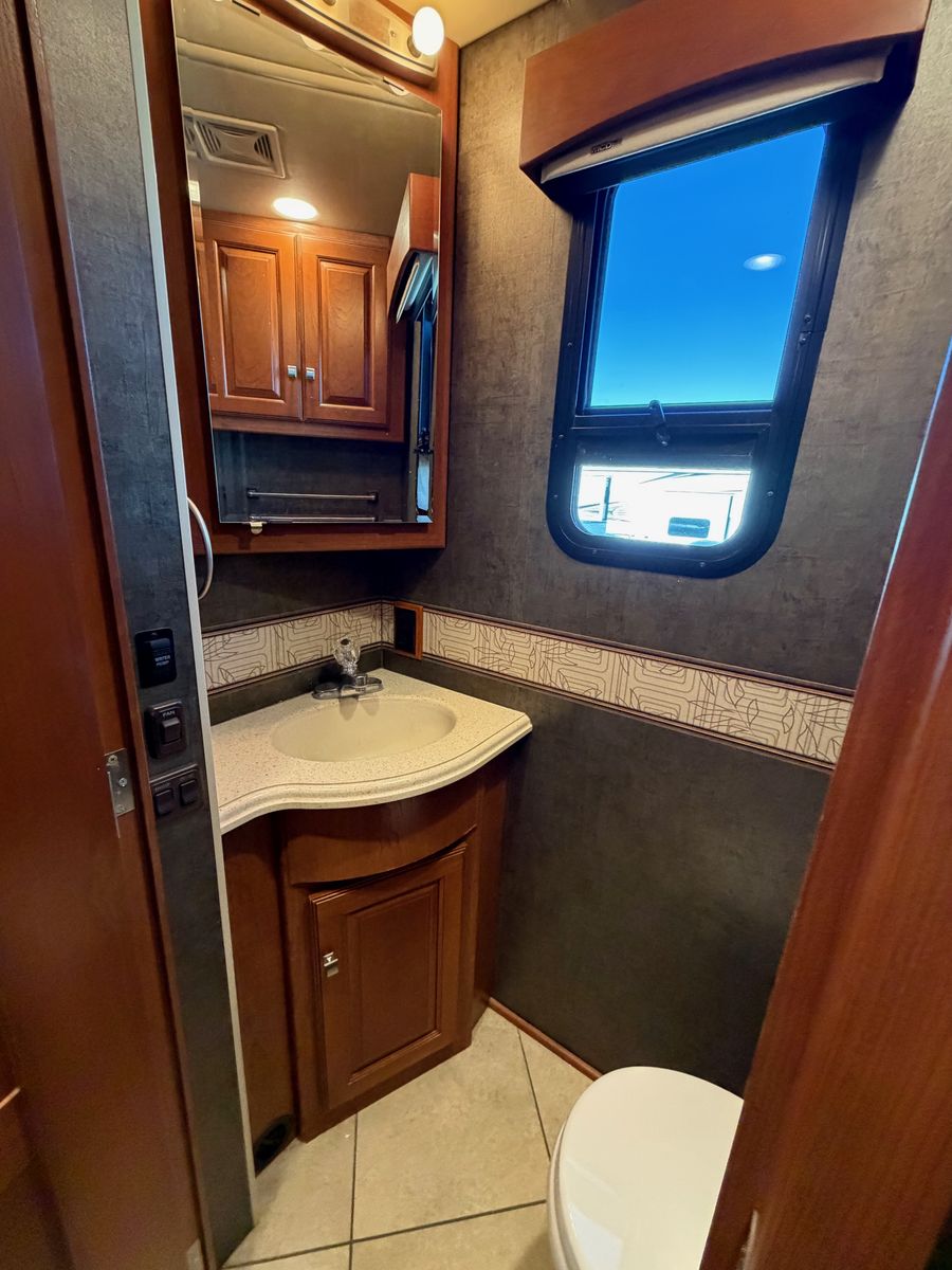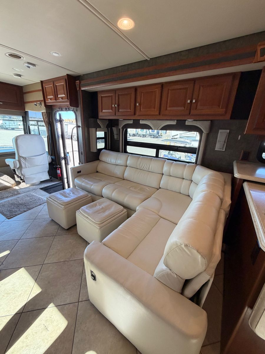 This Winnebago motorhome boasts luxury and quality with comfort and space that Winnebago is known for. This beautiful coach is extremely well-kept and clean. The unit has the Ford V10 Triton engine, 3 slides, large outside storage, 2 AC units, slide toppers and full body paint.