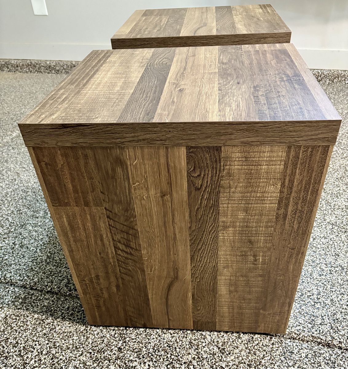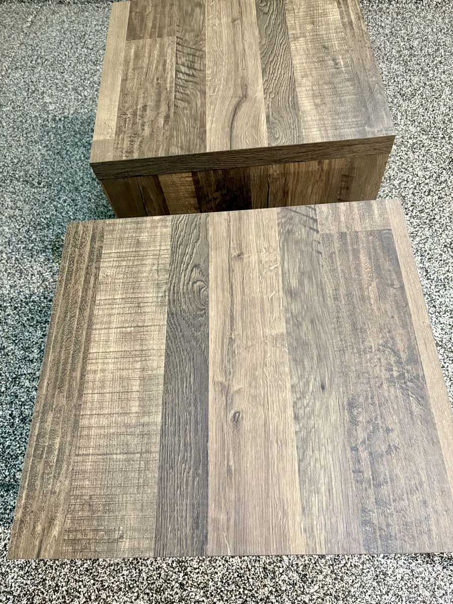 Bought these 2 wood end tables 3 years ago. They are in really great condition. Each table has a shelf for storage. Use them in your bedroom or living room. Measurements are: 24 1/2" tall, 20" wide and 22" deep.