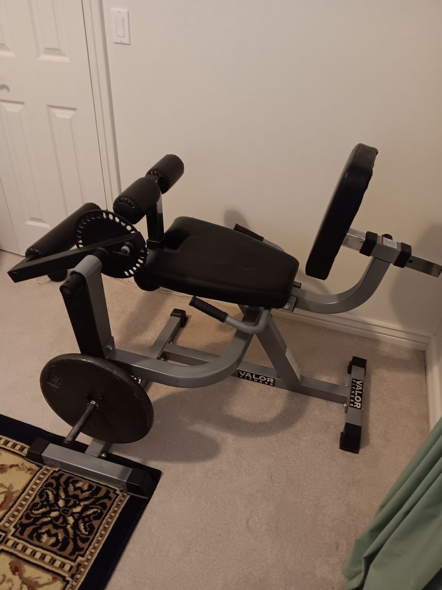Valor Fitness leg extension and curl machine. Additional info on Amazon. was rarely used. Includes a 50lb plate.